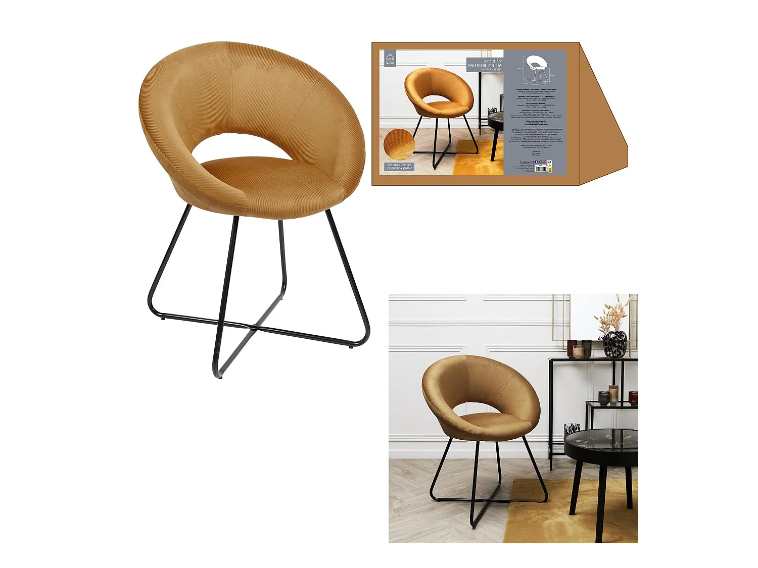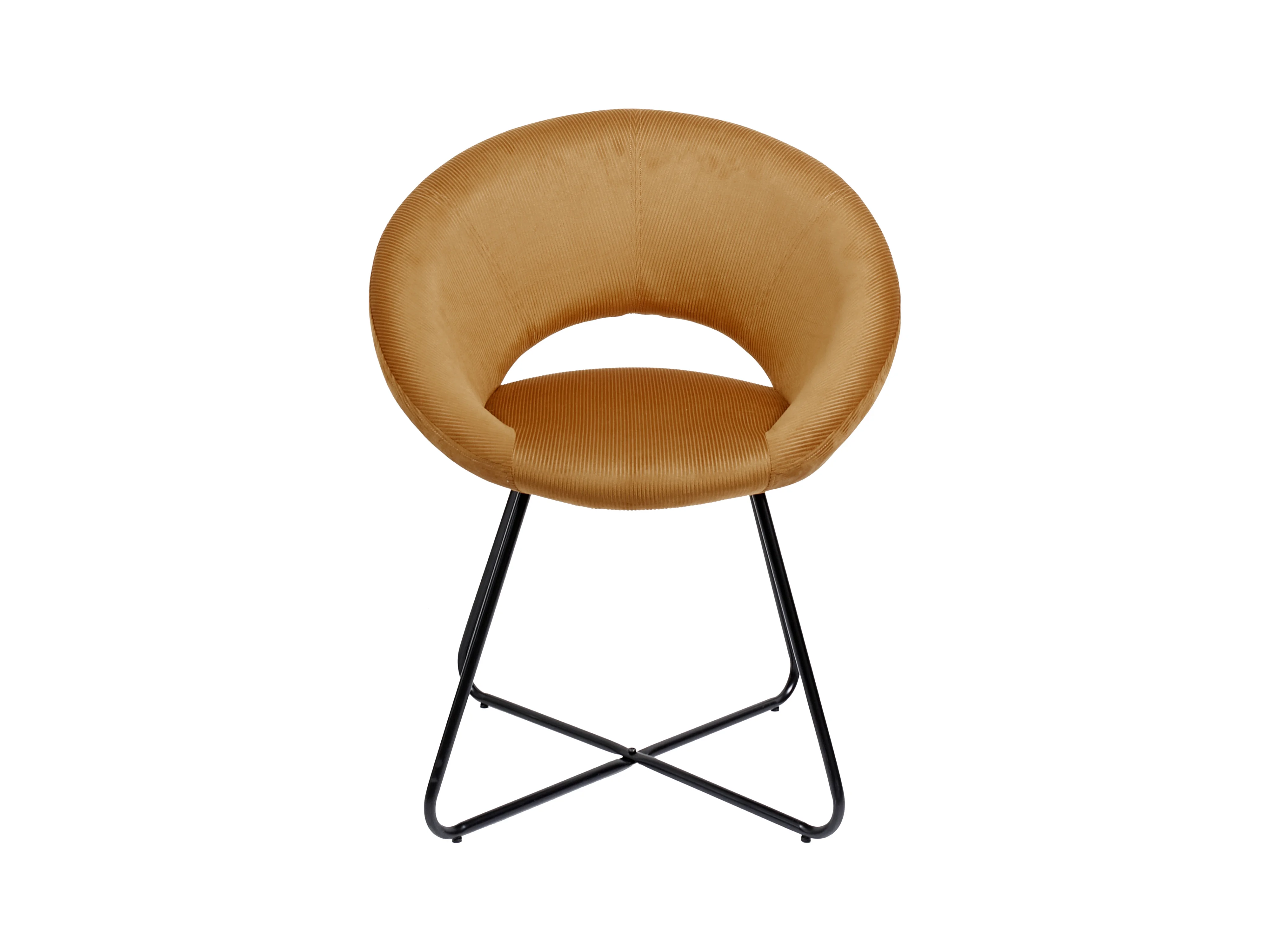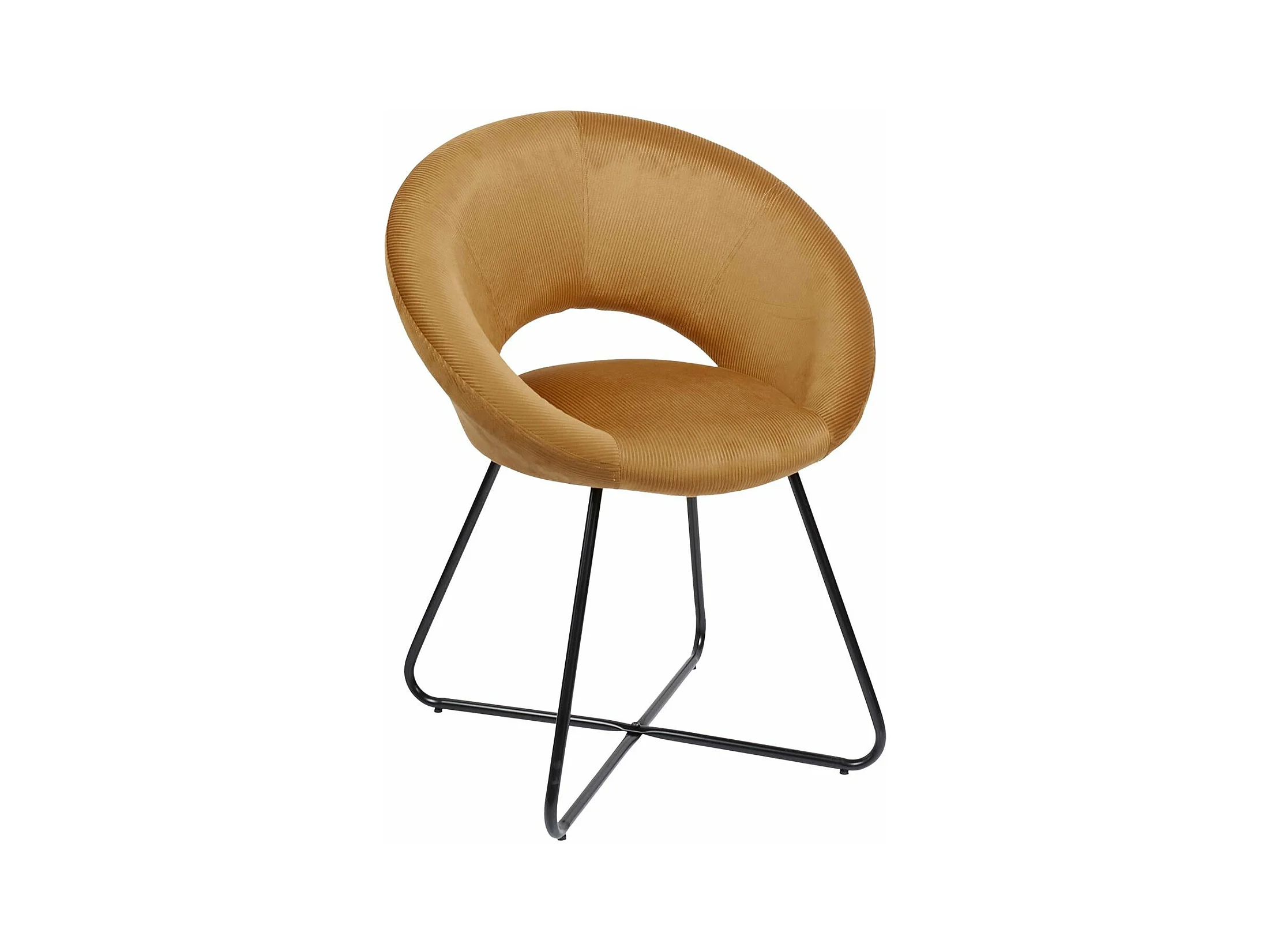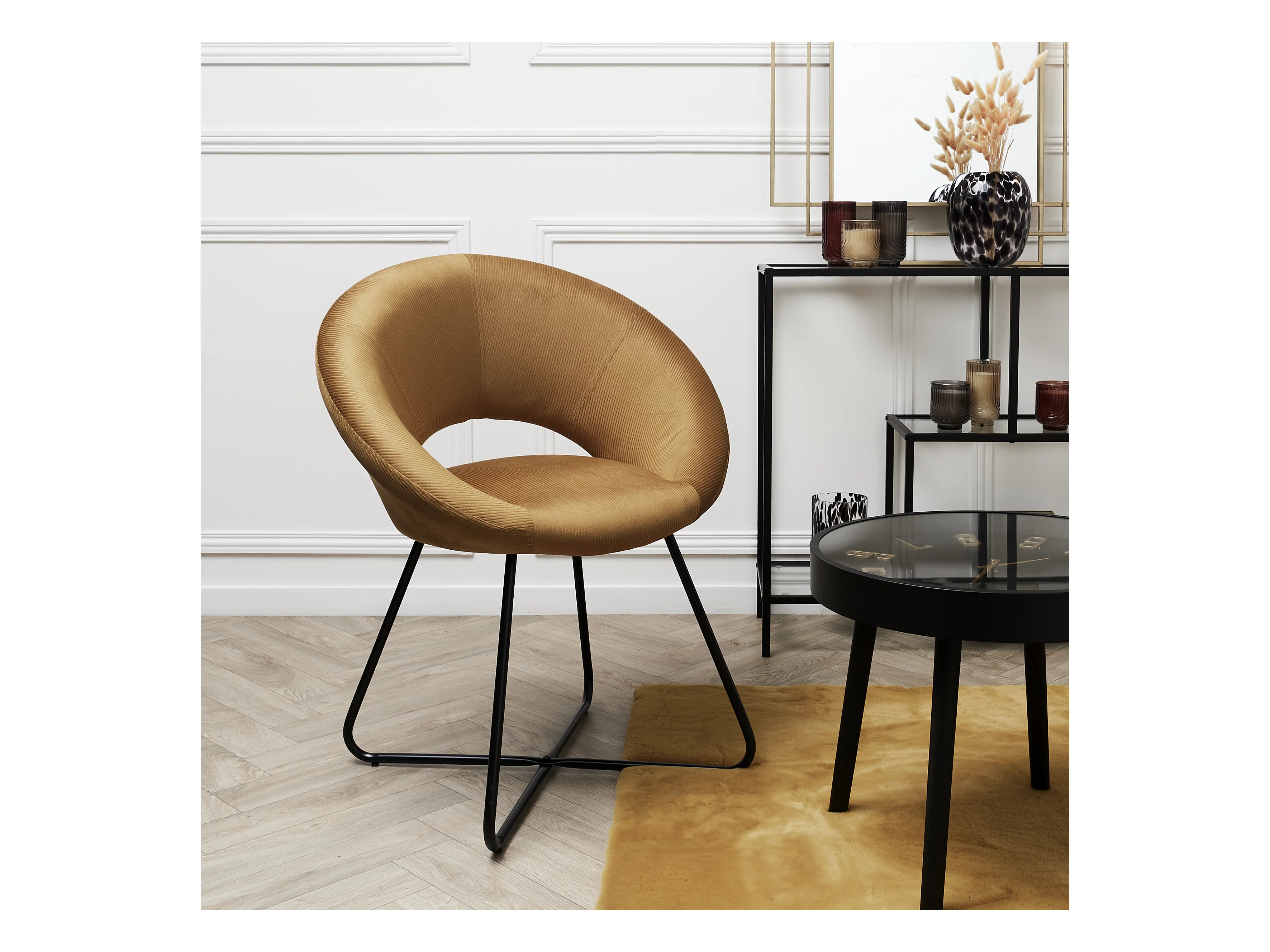 Fauteuil Rond Velours Cotele Giulia Jaune Noir, Jaune
