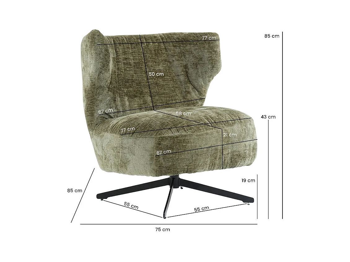 Fauteuil rotatif 360° en microfibre vert kaki et pieds métal – FRANCESCA