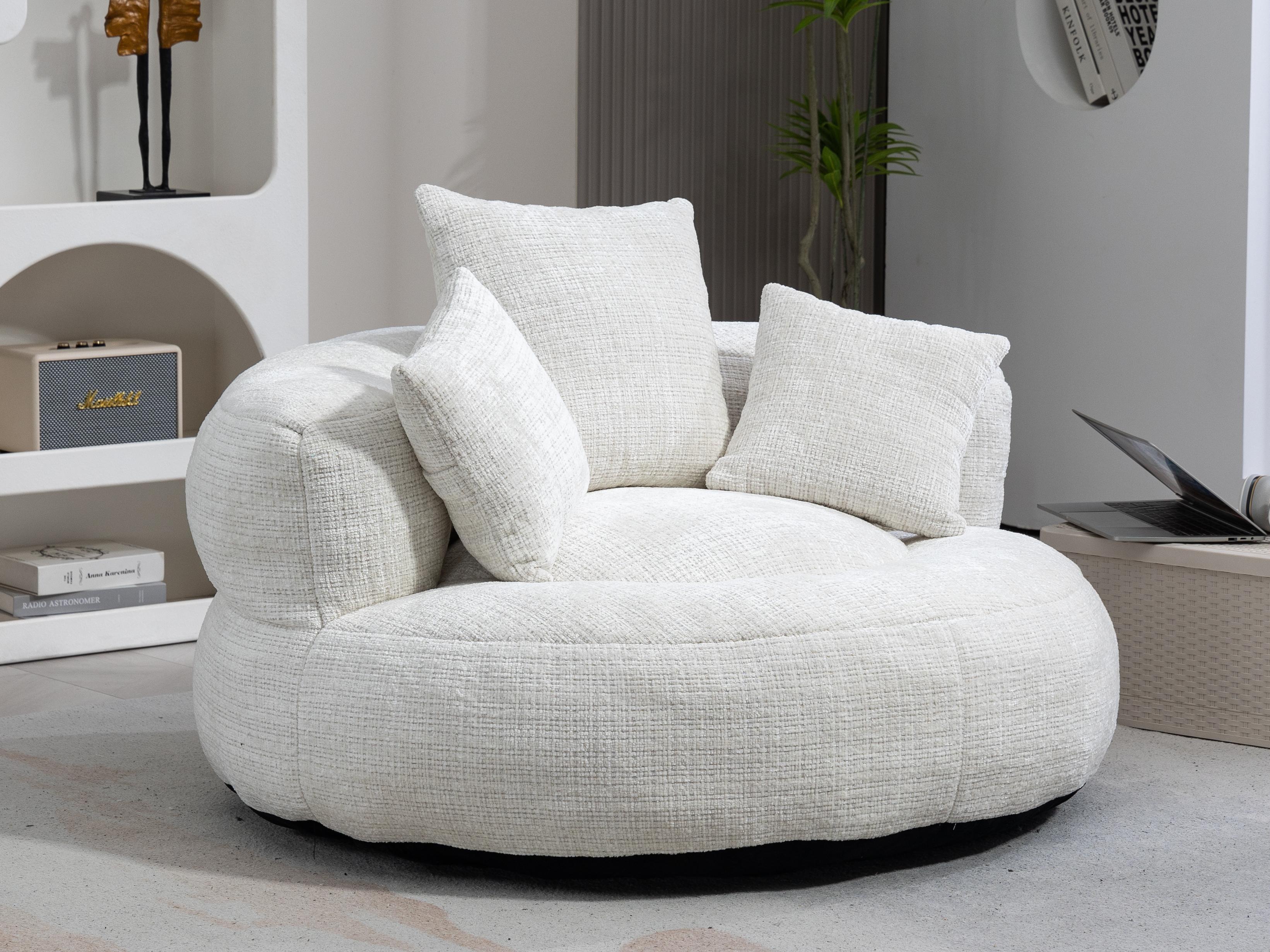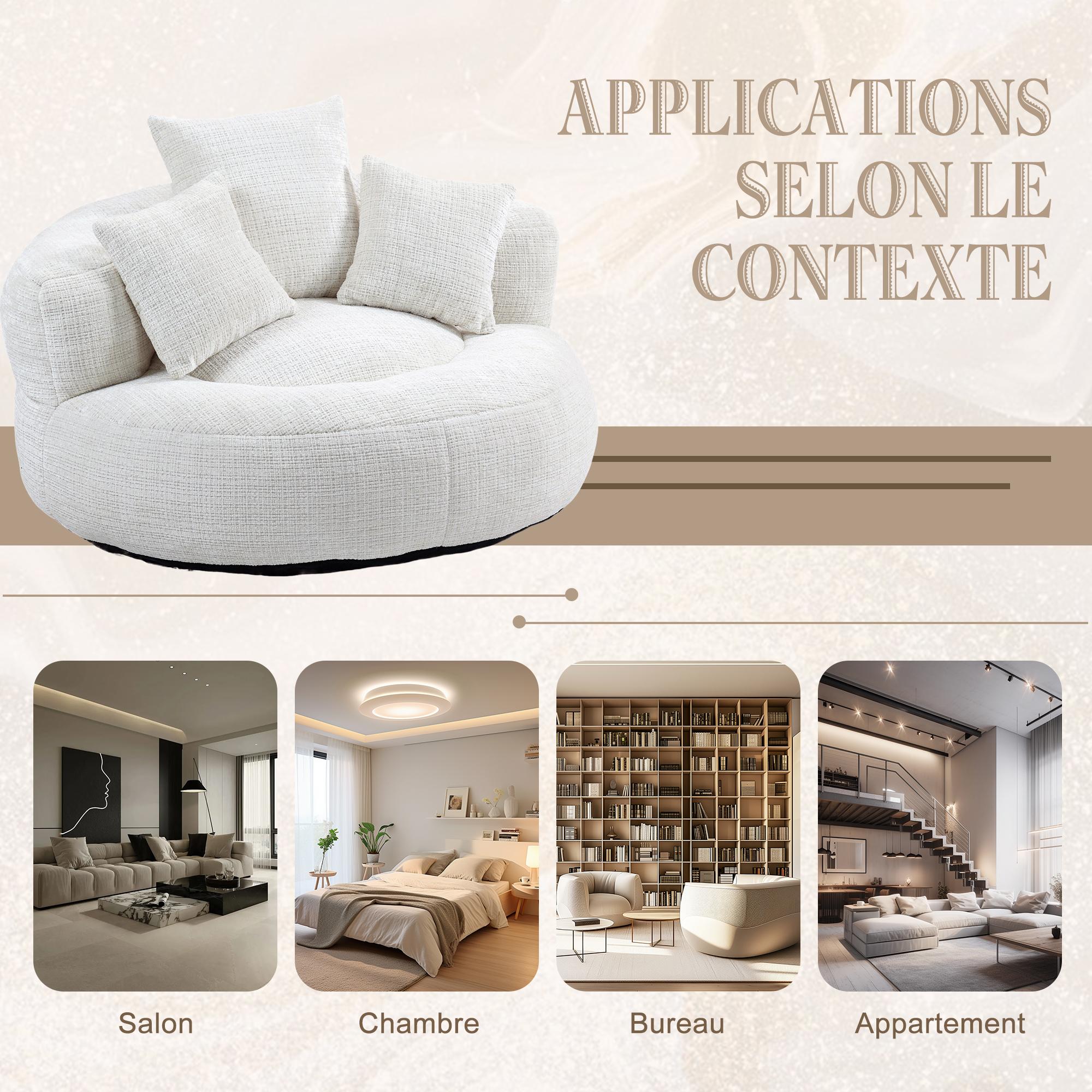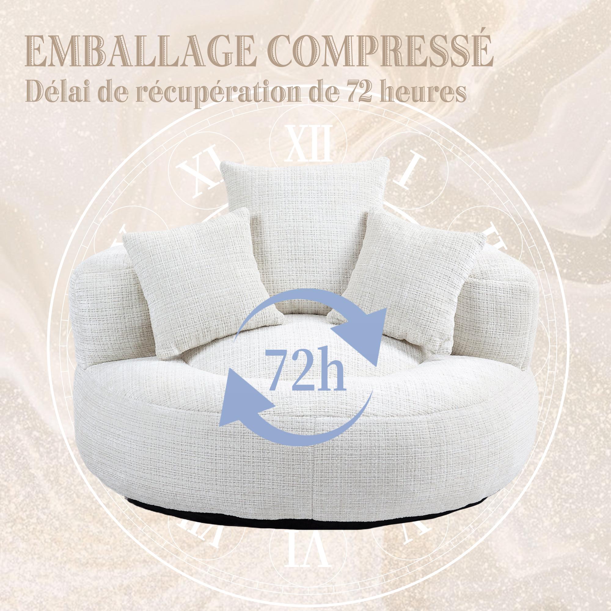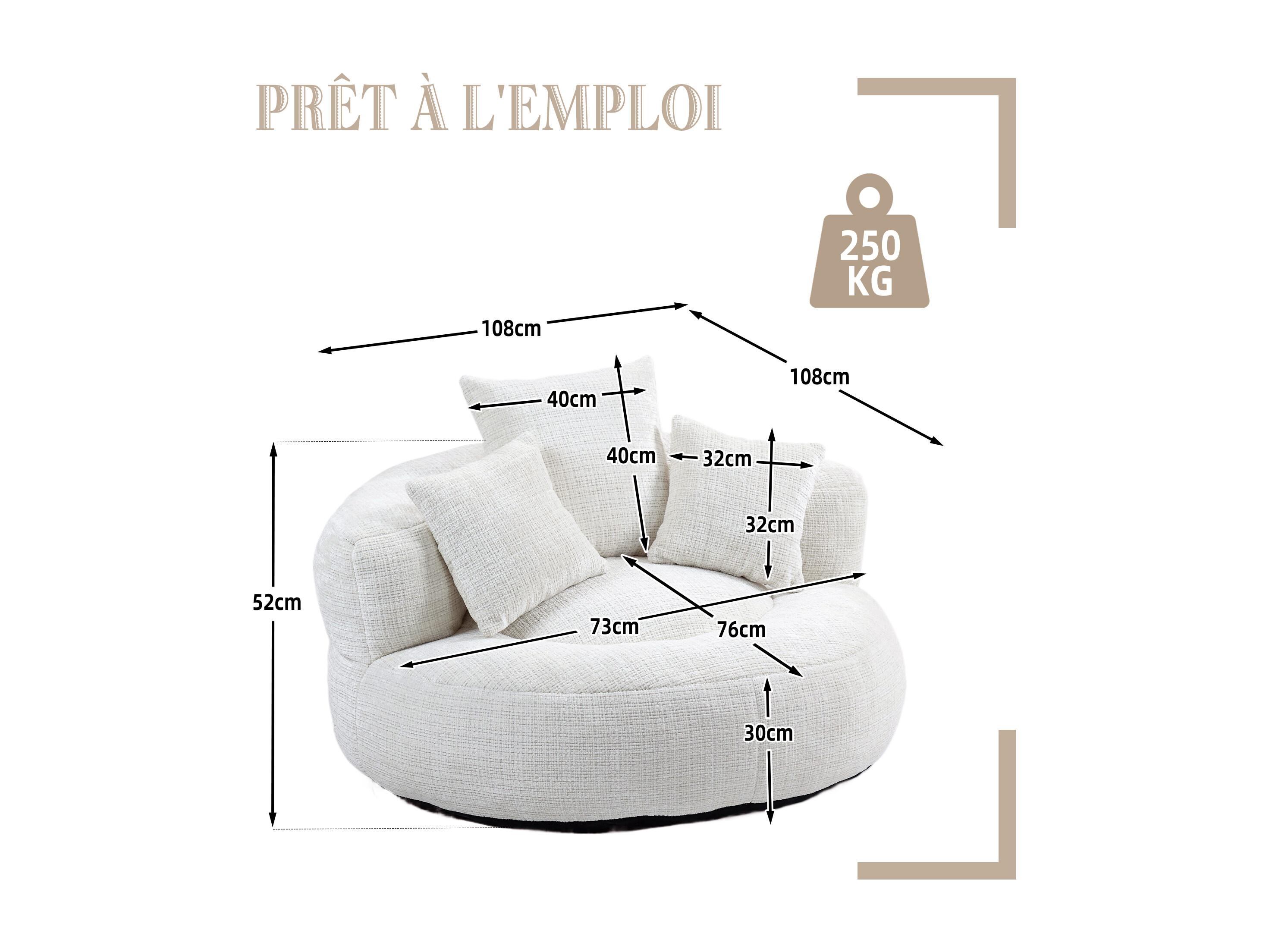 Fauteuil pouf beige – haut dossier – grand modèle – 3 coussins inclus – ultra moelleux et usage multi-situations - pour adultes et enfants