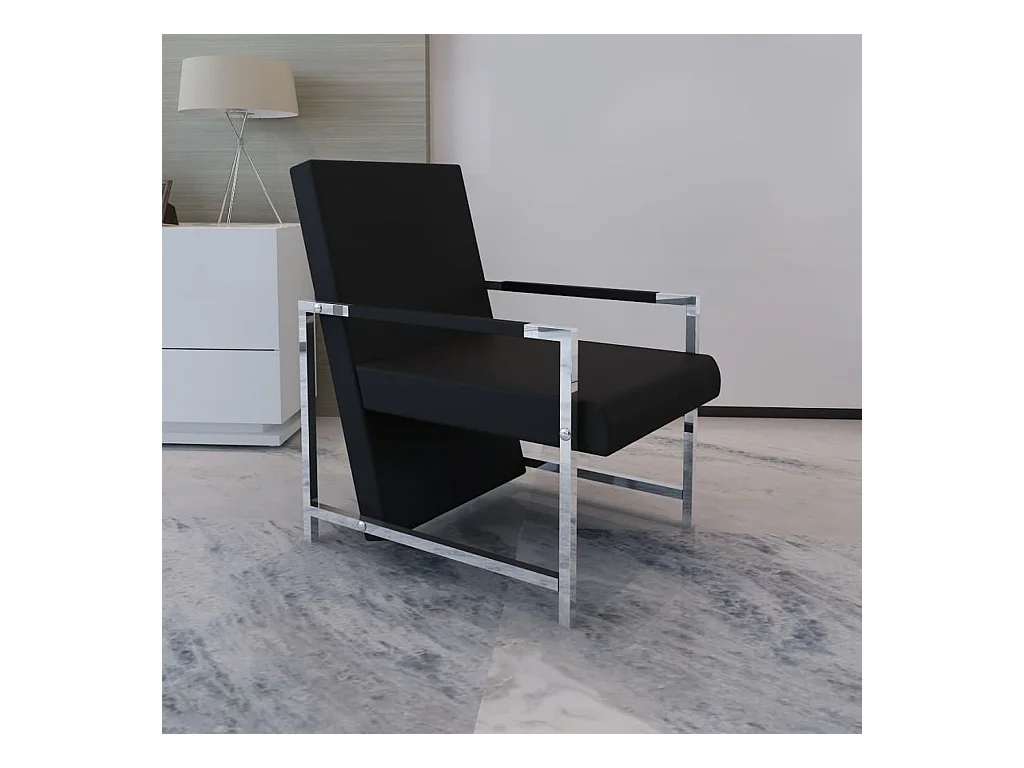 Fauteuil salon-Chaise de relax-Fauteuil avec pieds chromés Noir Similicuir SHL4248