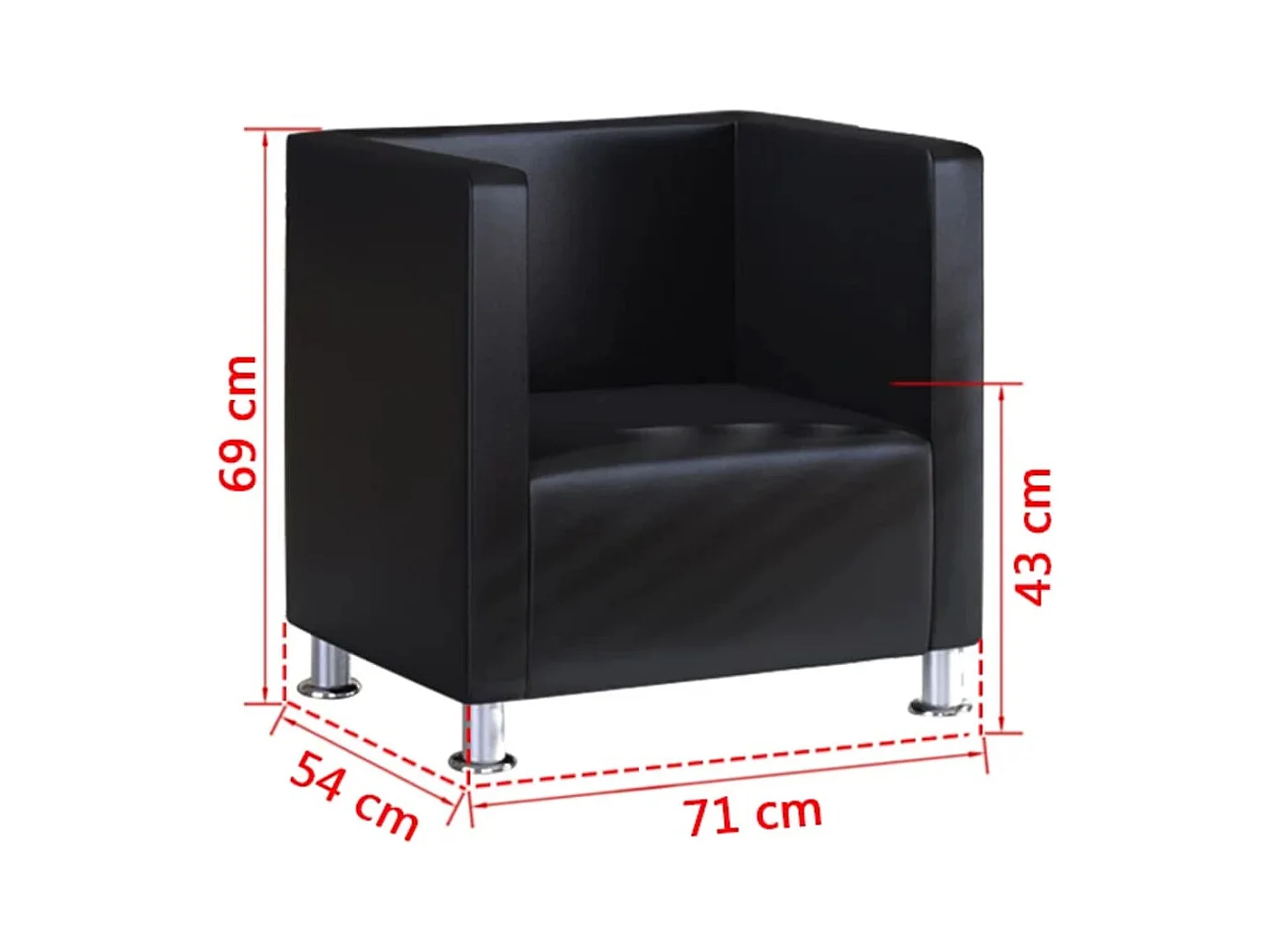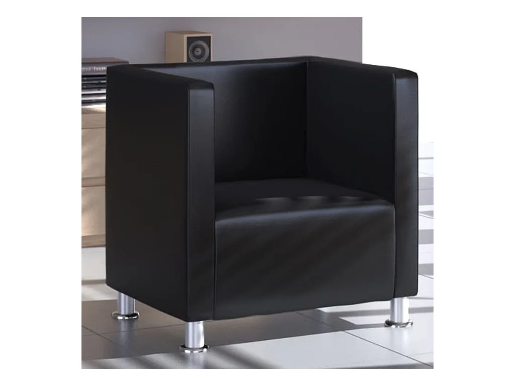 Fauteuil salon-Chaise de relax-Fauteuil cube 71x54x69cm noir similicuir SHL2451