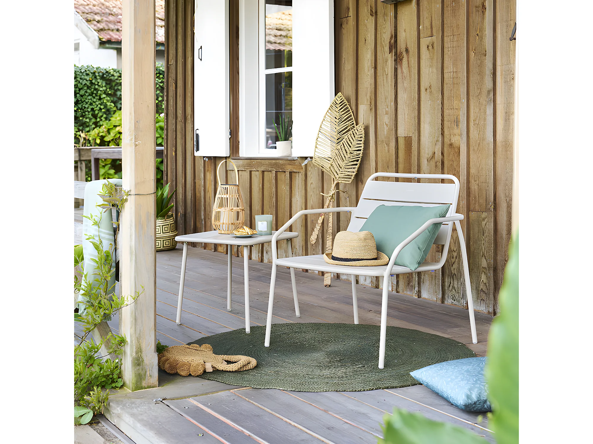 Fauteuil lounge de jardin avec coussin acier époxy polyester blanc beige crème