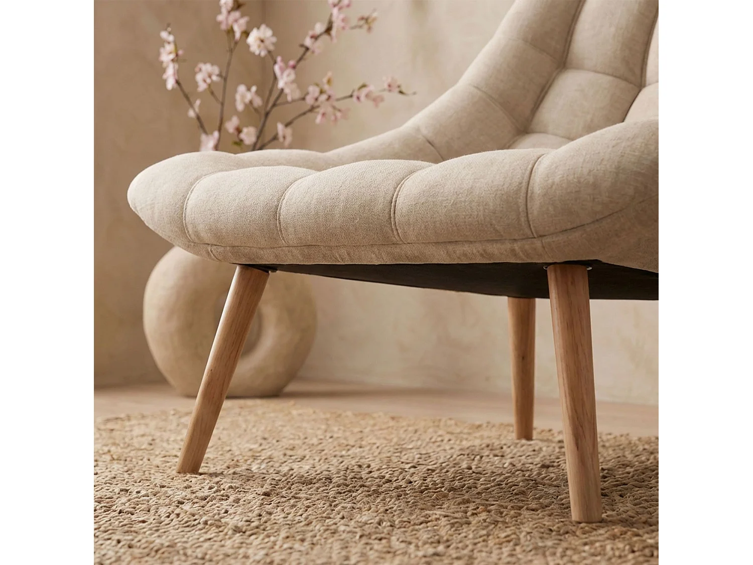 Fauteuil Scandinave en Tissu "Johan" 102cm Beige