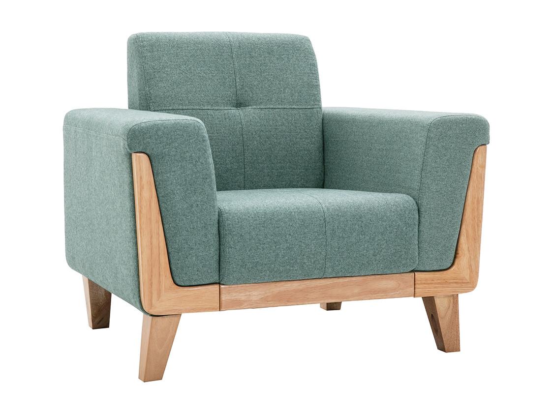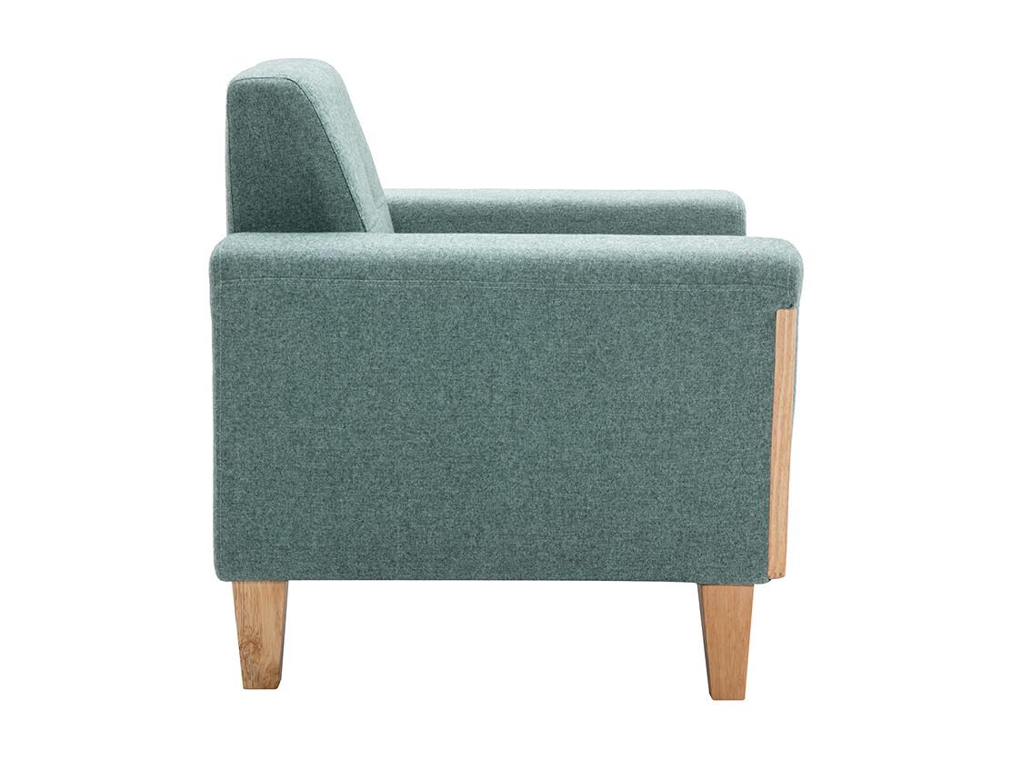 Fauteuil scandinave en tissu vert de gris et bois clair FJORD