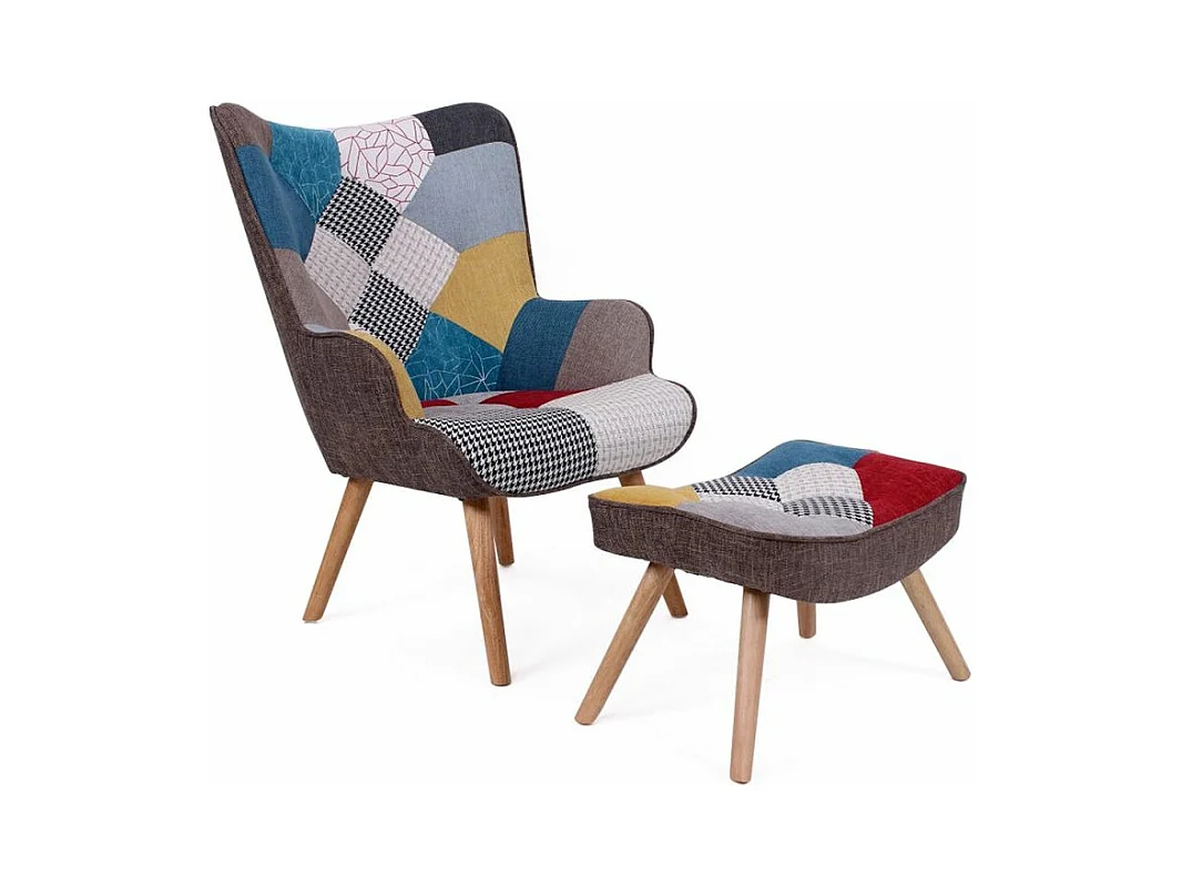 Fauteuil Scandinave & Pouf Patchwork "Orle" 98cm Multicolore