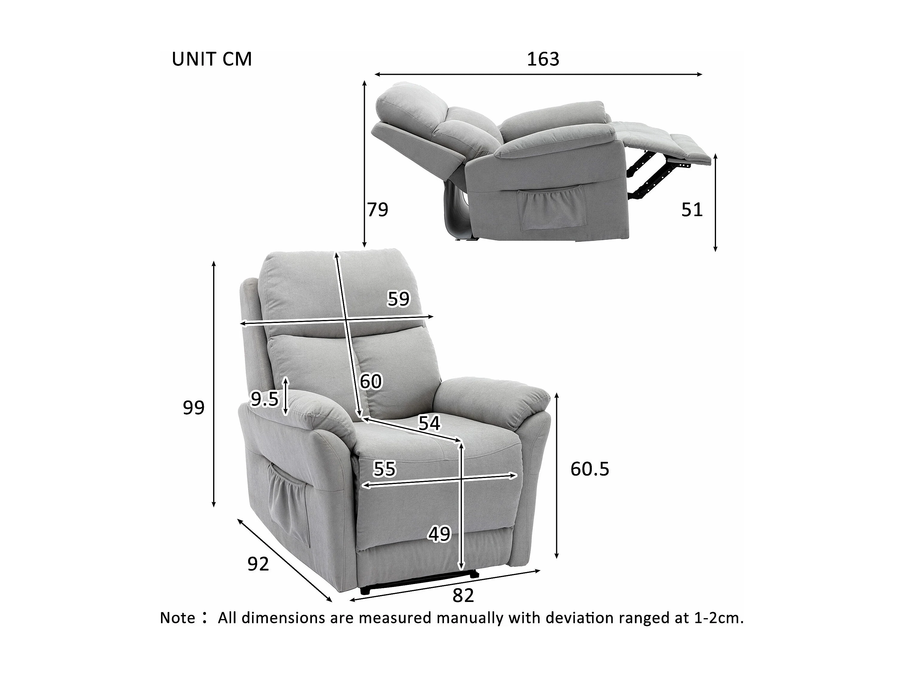 Fauteuil simple Fauteuil TV pour Salon - Chaise Longue en Cuir PU avec Repose-Pieds - Gris XXL