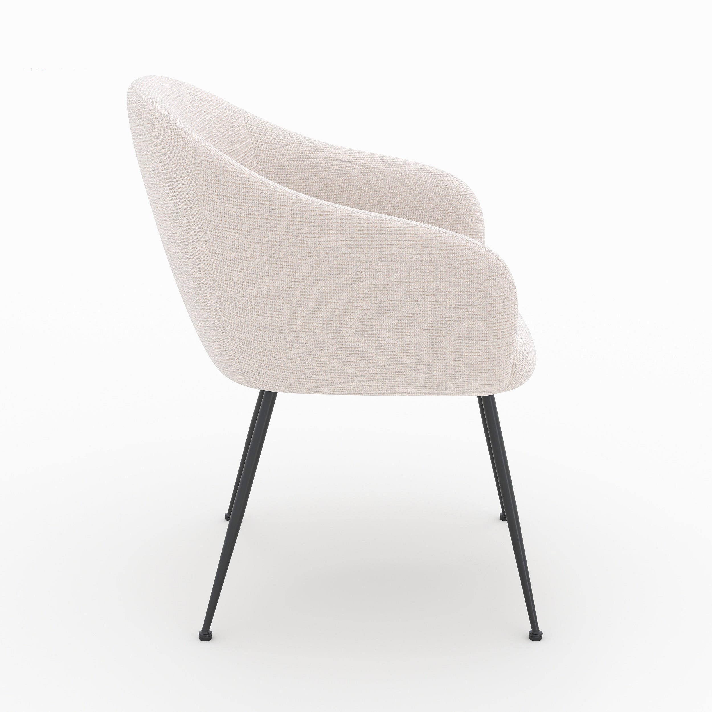 Fauteuil en tissu blanc chiné et pieds en métal noir - Socky