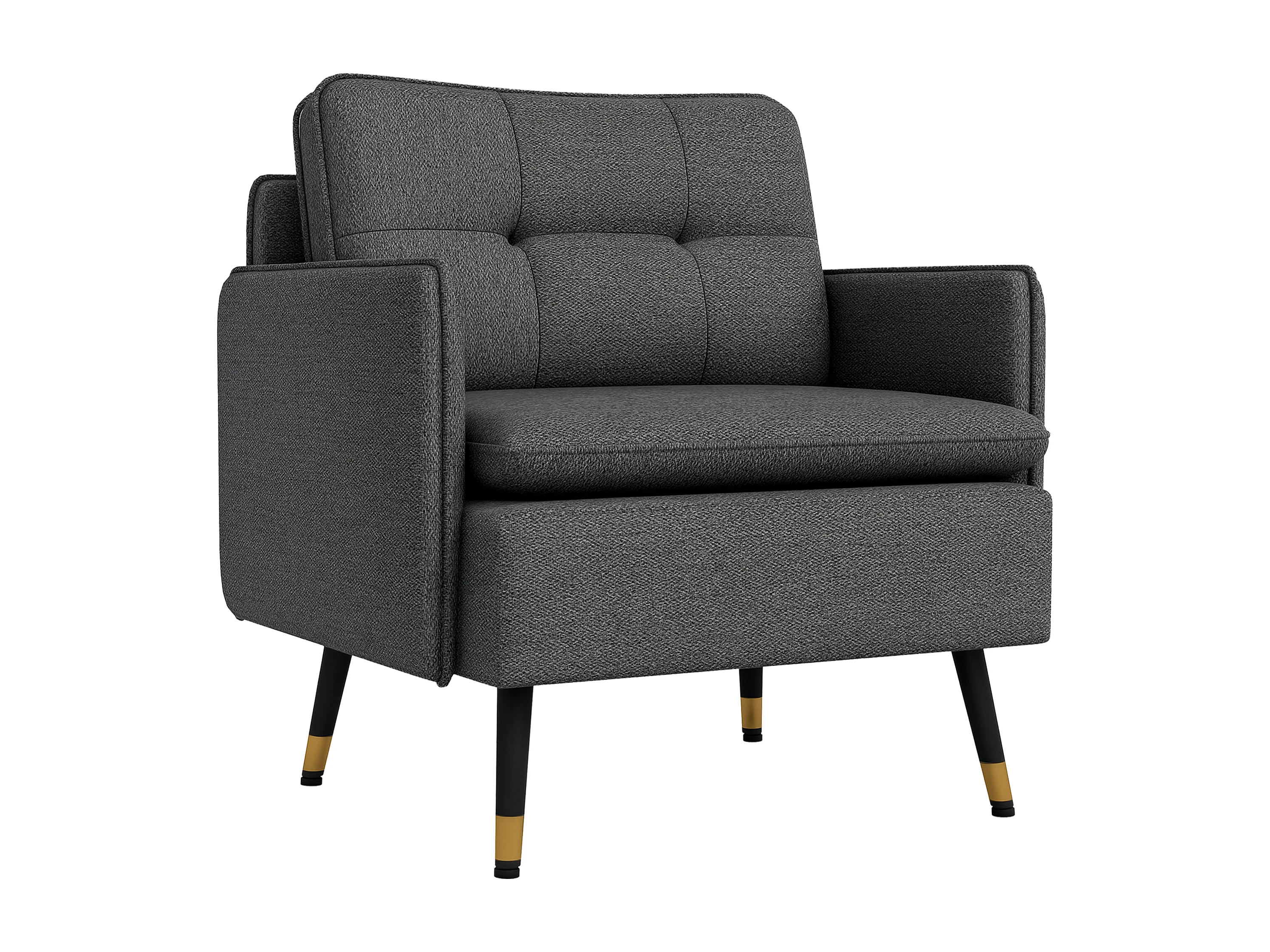 Fauteuil style contemporain grand confort piètement métal noir tissu toucher lin gris chiné