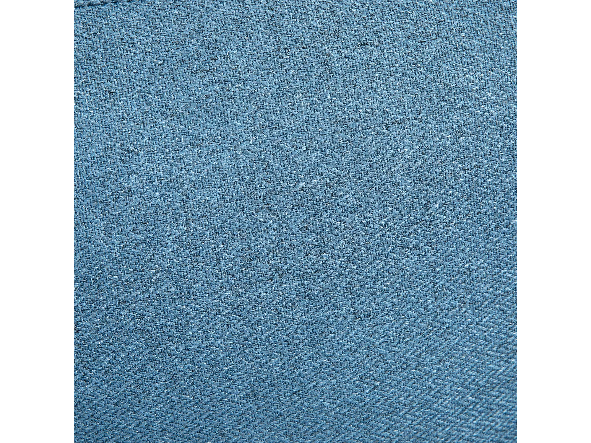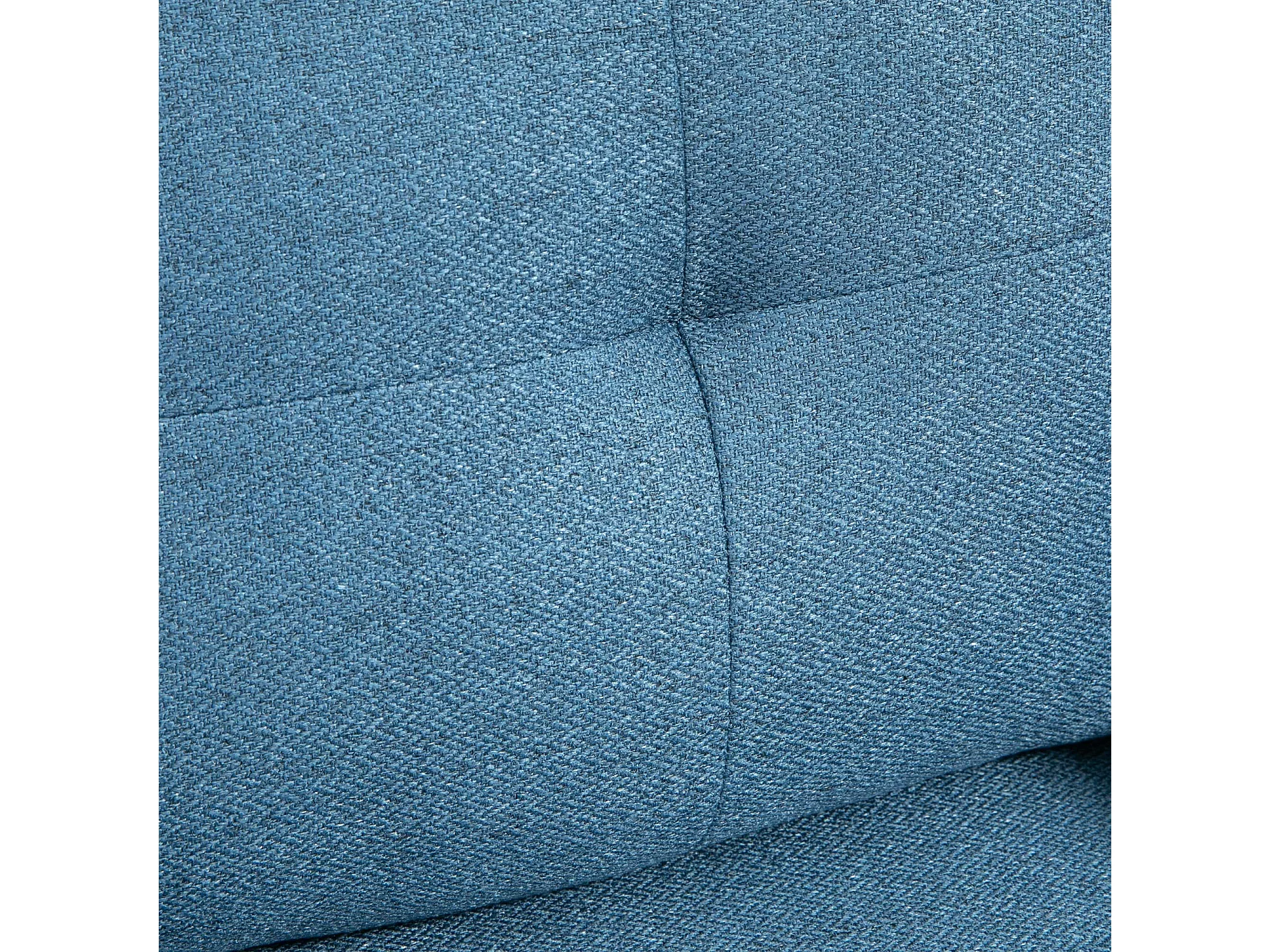 Fauteuil style art-déco dossier effet capitonné piètement incliné effilé métal noir extrémités dorées tissu bleu