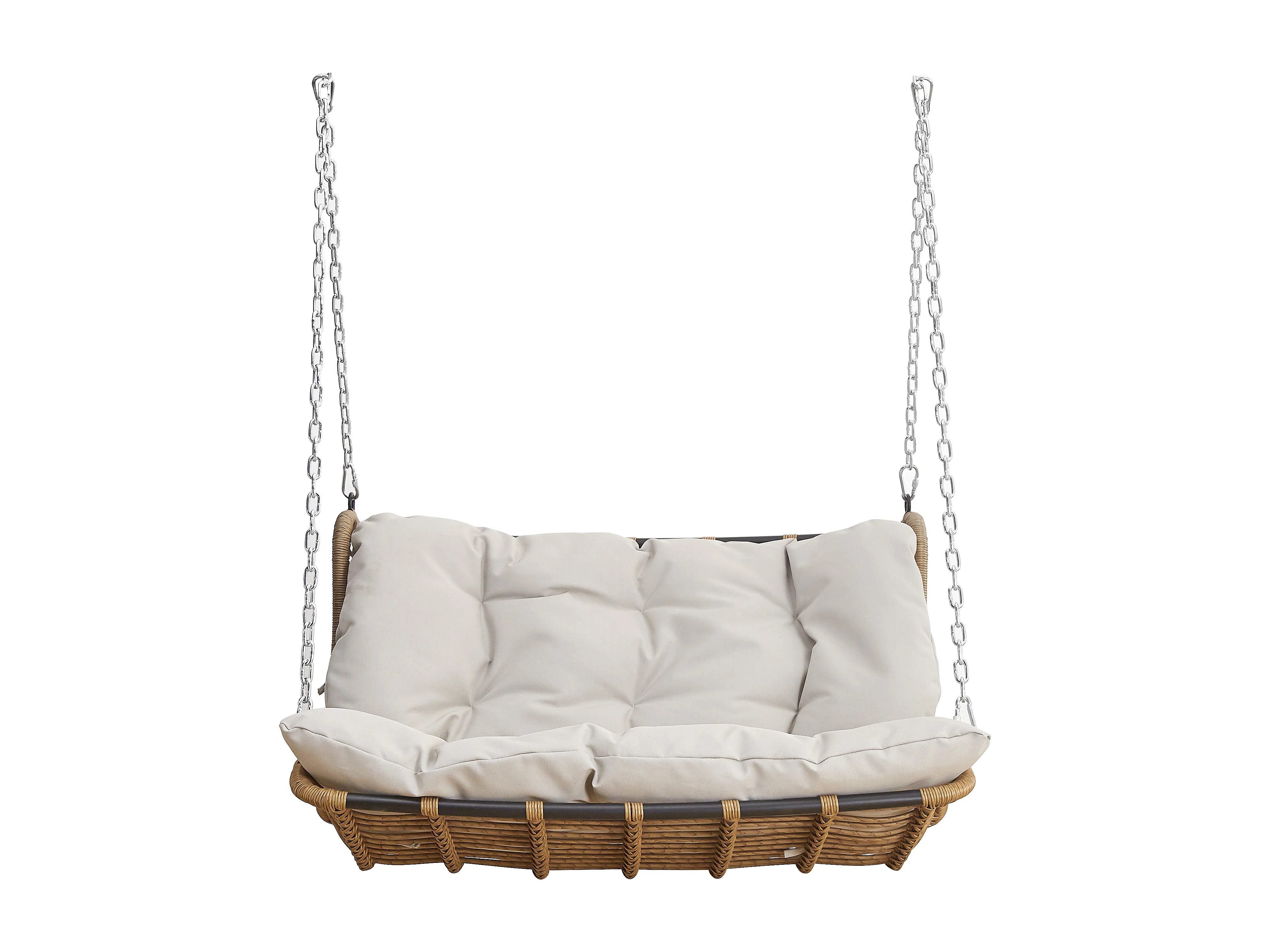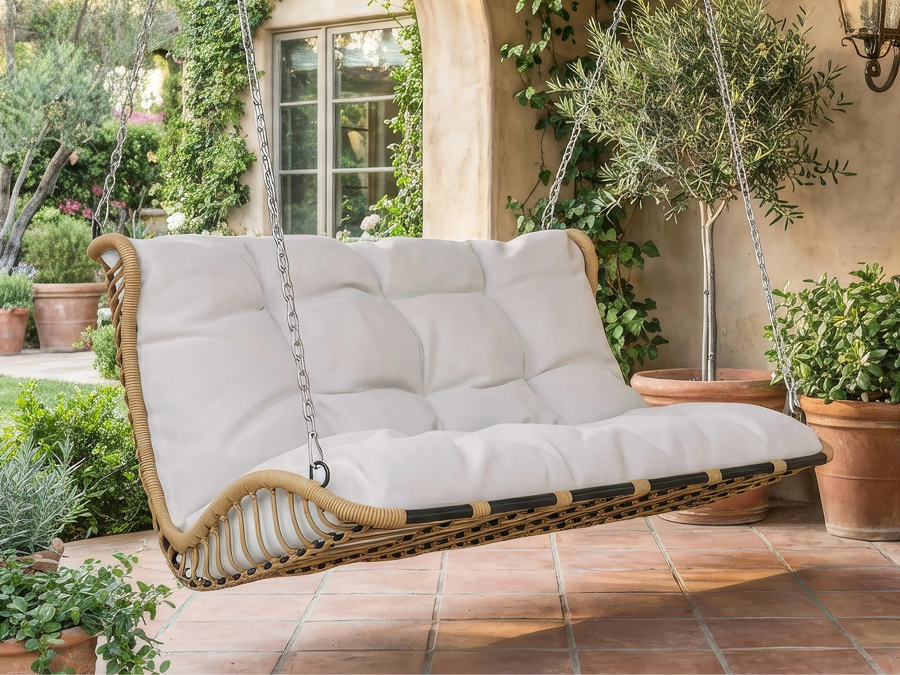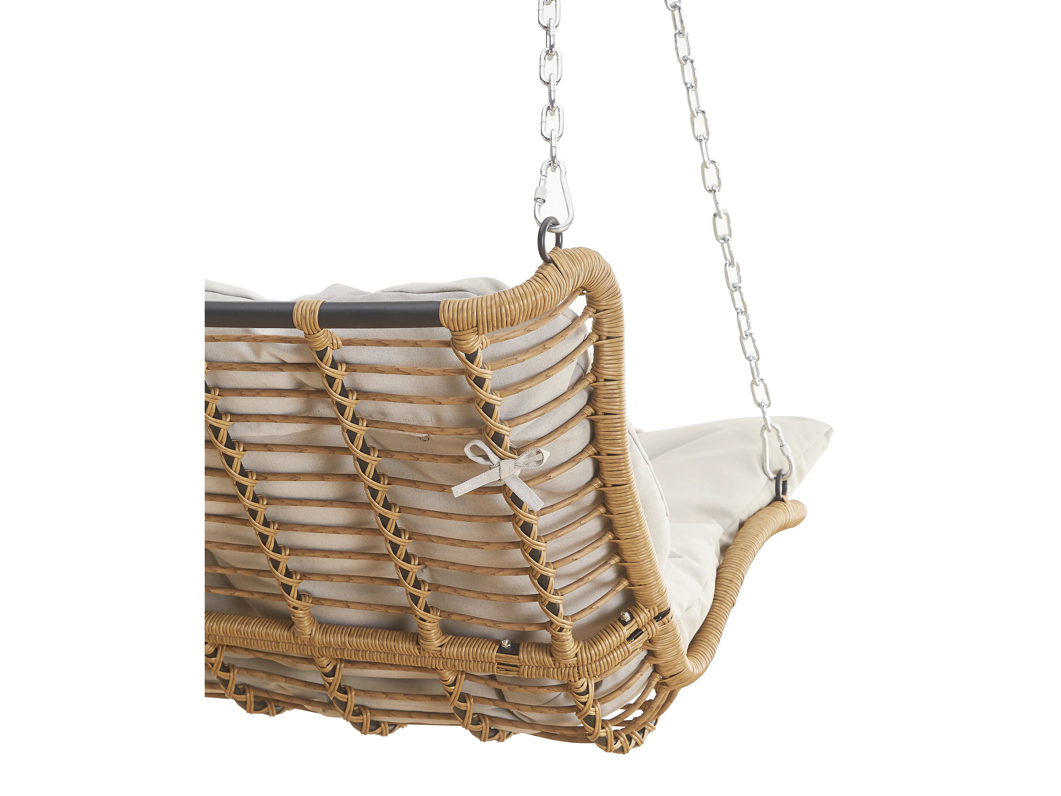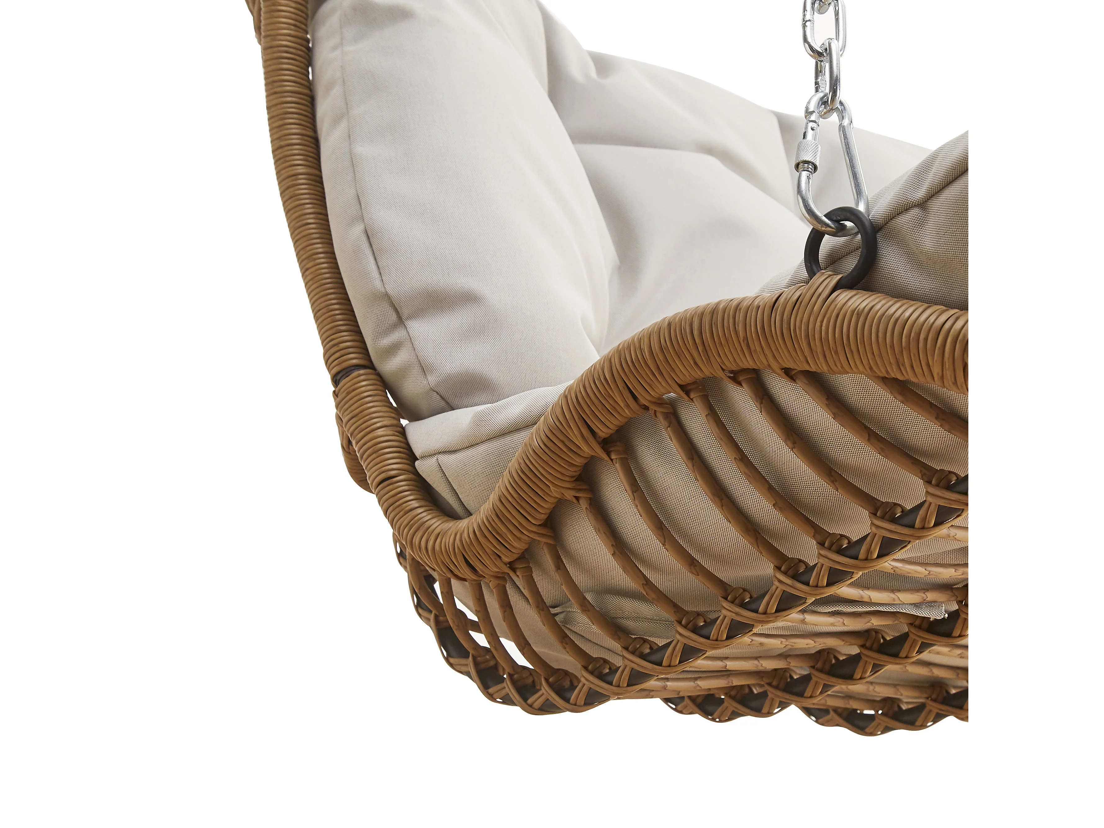 Fauteuil Suspendu Double en Résine Tressée - Balançoire de Jardin 2 Places avec Coussins Déhoussables et Chaînes - Sans Support - Beige