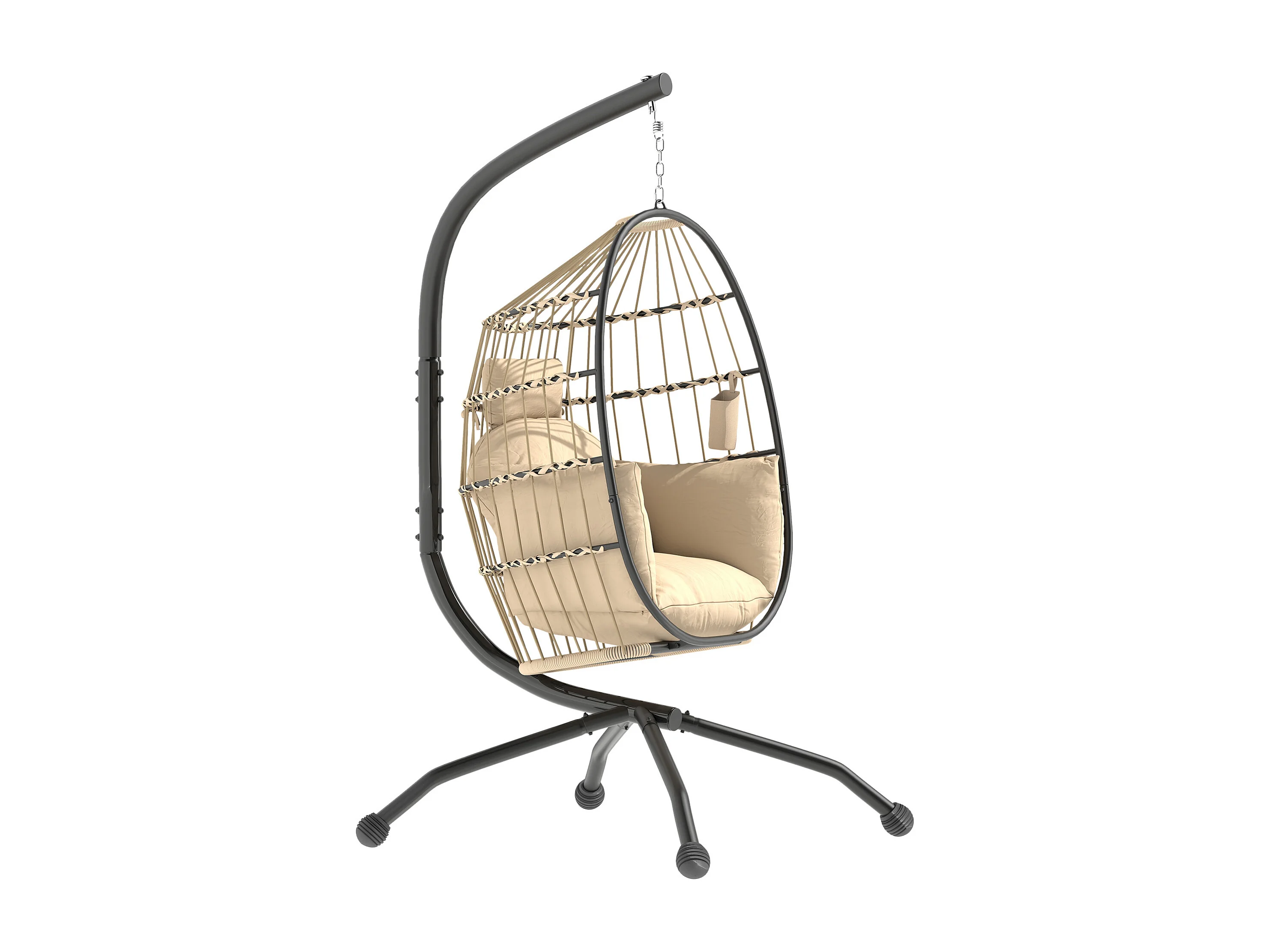 Fauteuil suspendu - fauteuil oeuf suspendu - panier pliable - épais coussin - porte-gobelet - acier noir résine tissu kaki