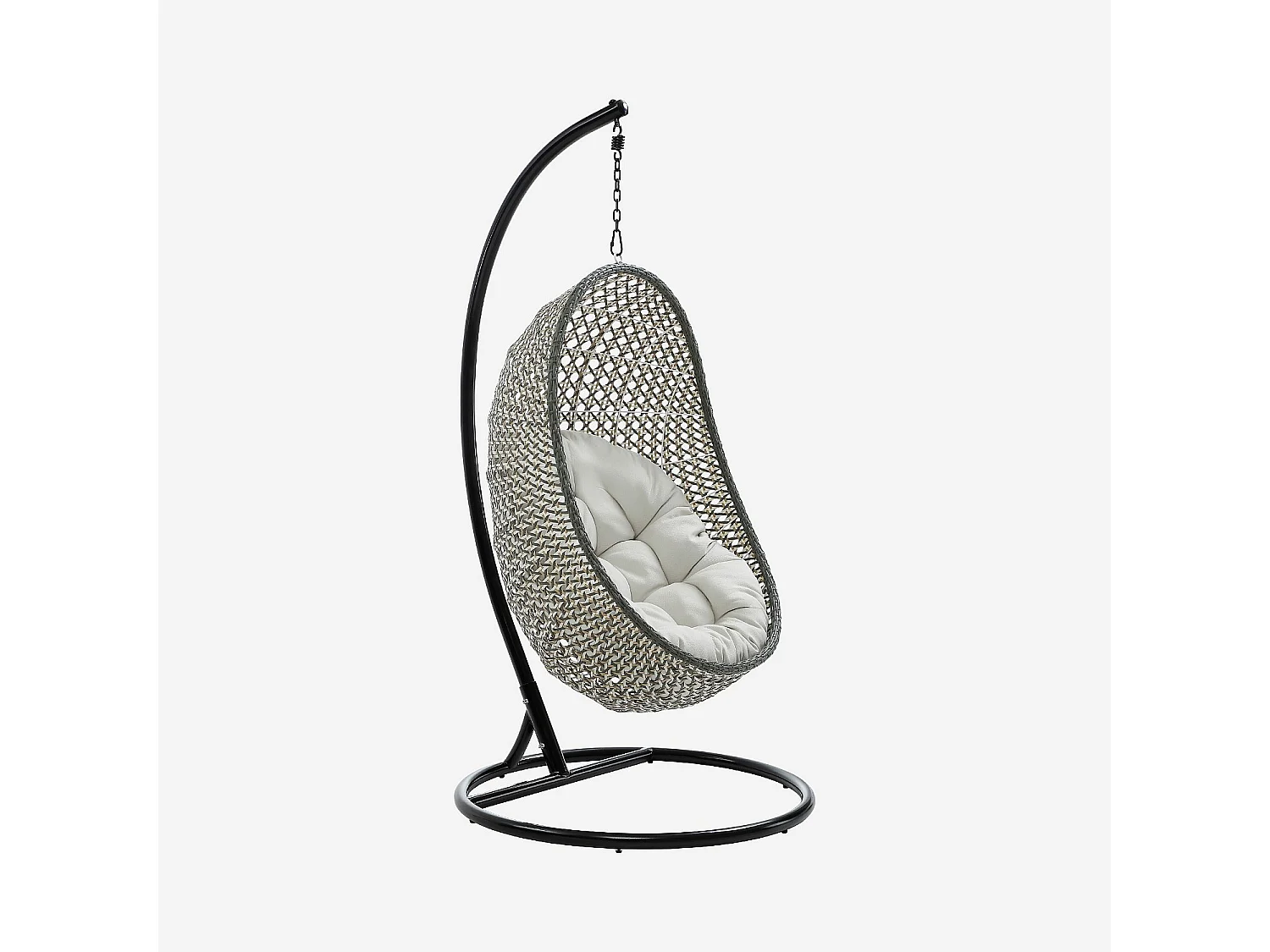 Fauteuil suspendu de jardin en résine tressée et métal noir - Vert kaki