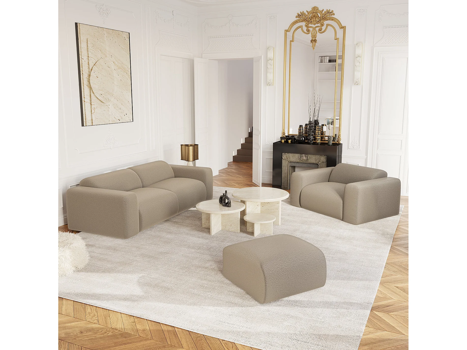 Fauteuil de salon bouclette taupe MYRA