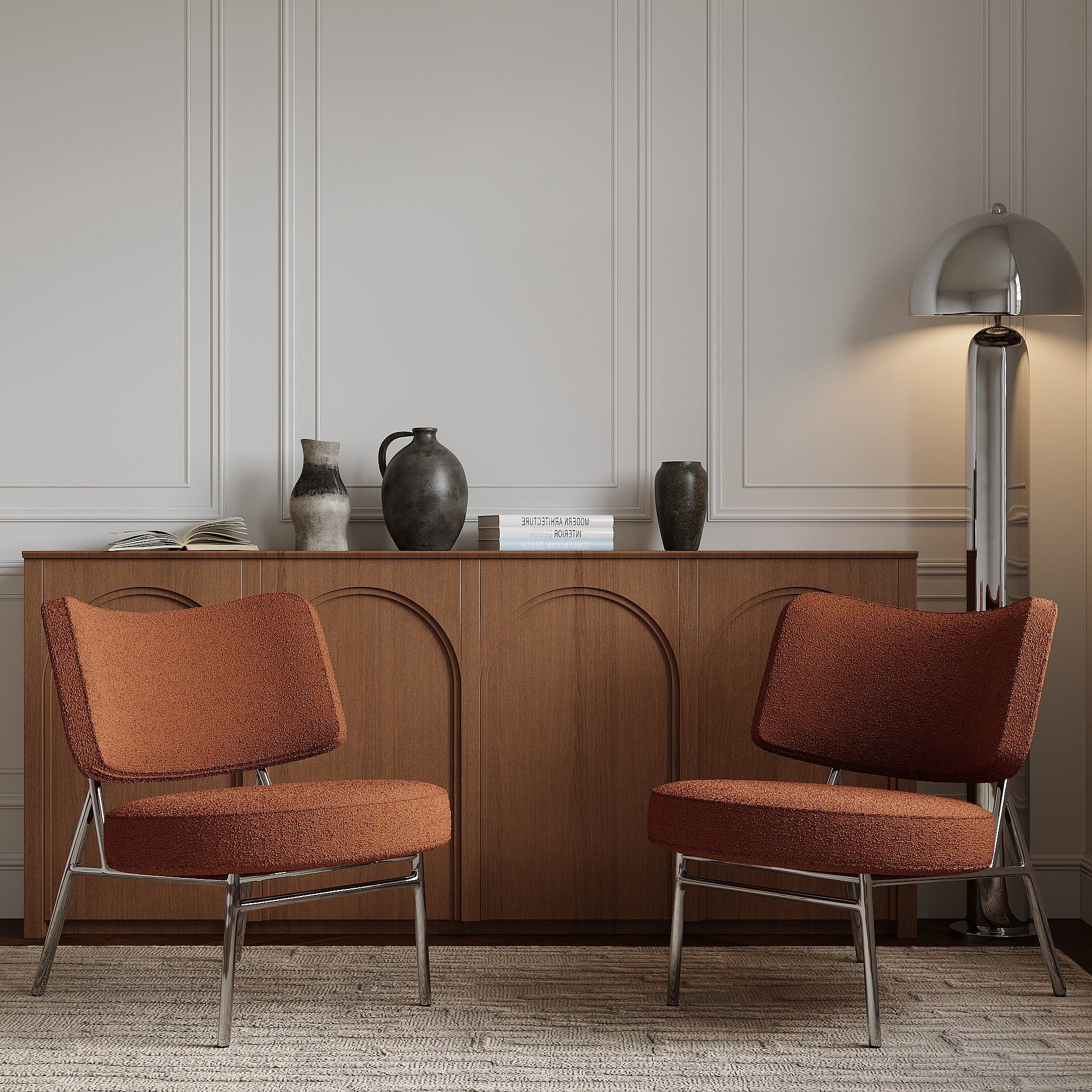 Fauteuil design pivotant en tissu effet velours texturé terracotta AMBER