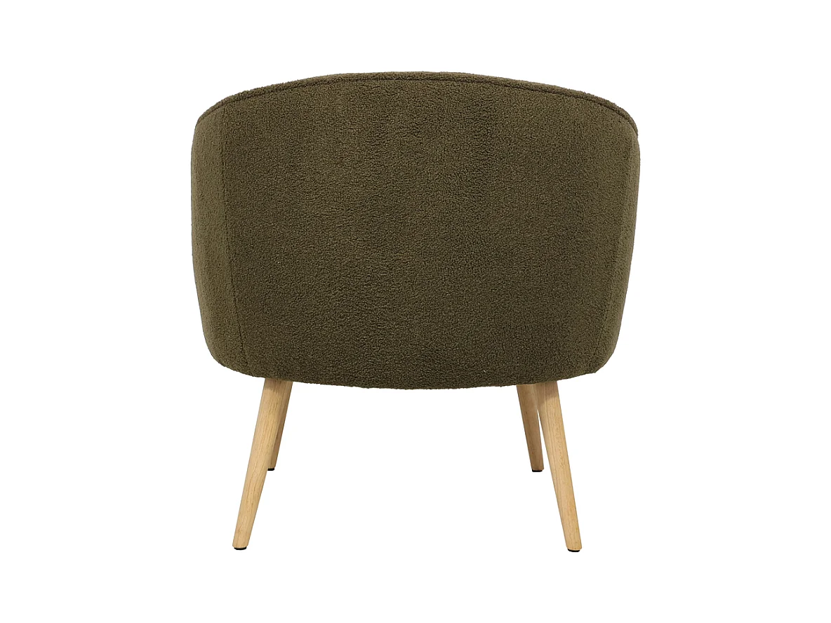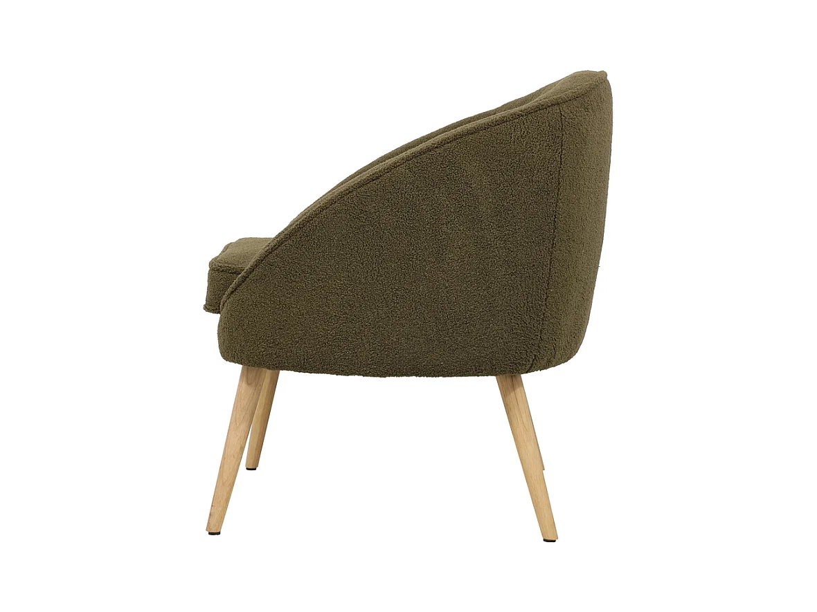 Fauteuil tissu effet laine bouclette kaki pied wengé