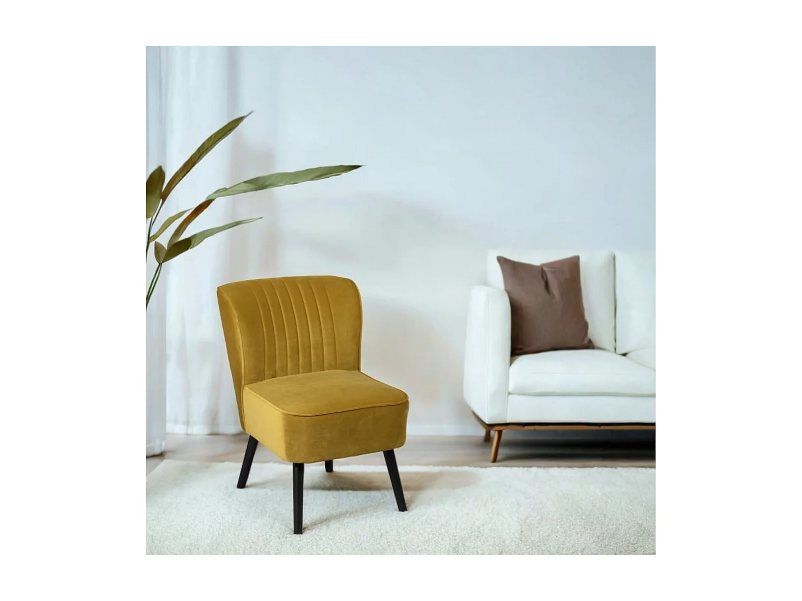 Fauteuil tissu polyester velours jaune moutarde pieds bois laqués noirs - JOSEPH