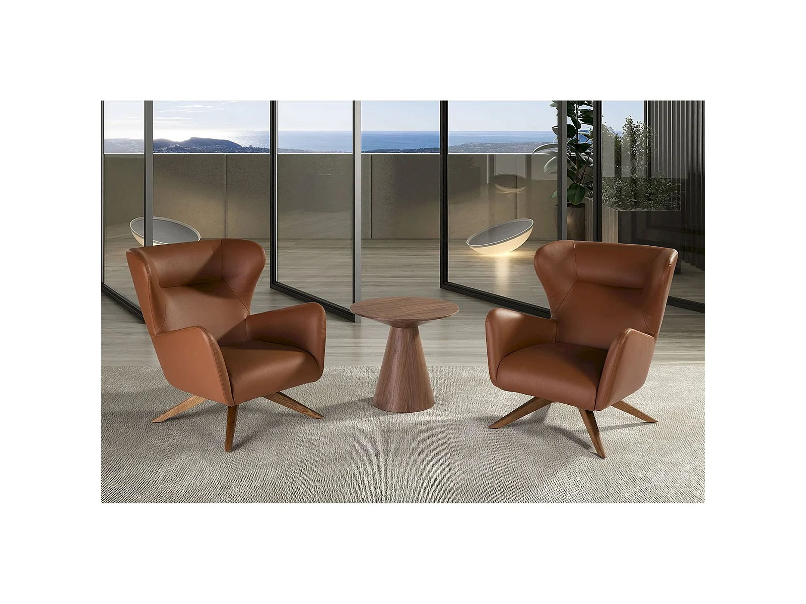 Fauteuil tournant à 360 º rembourré en similicuir pieds bois massif