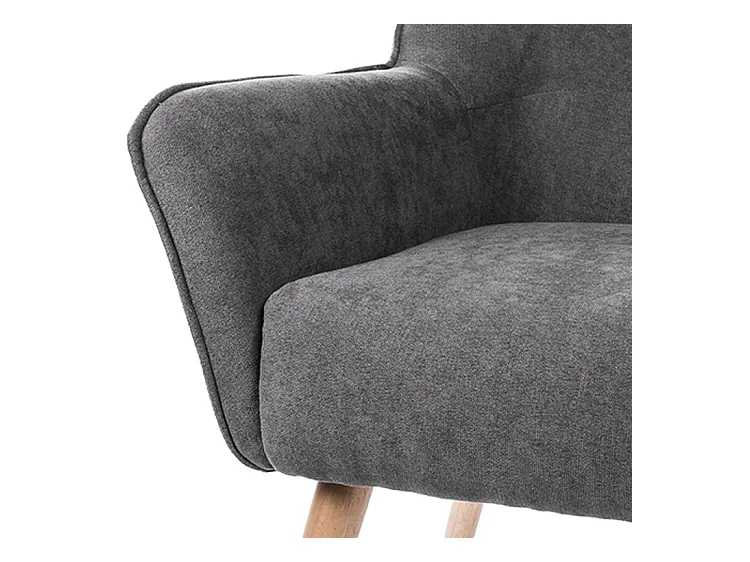 Fauteuil velours avec pieds légèrement en bois naturel Baky-Gris foncé