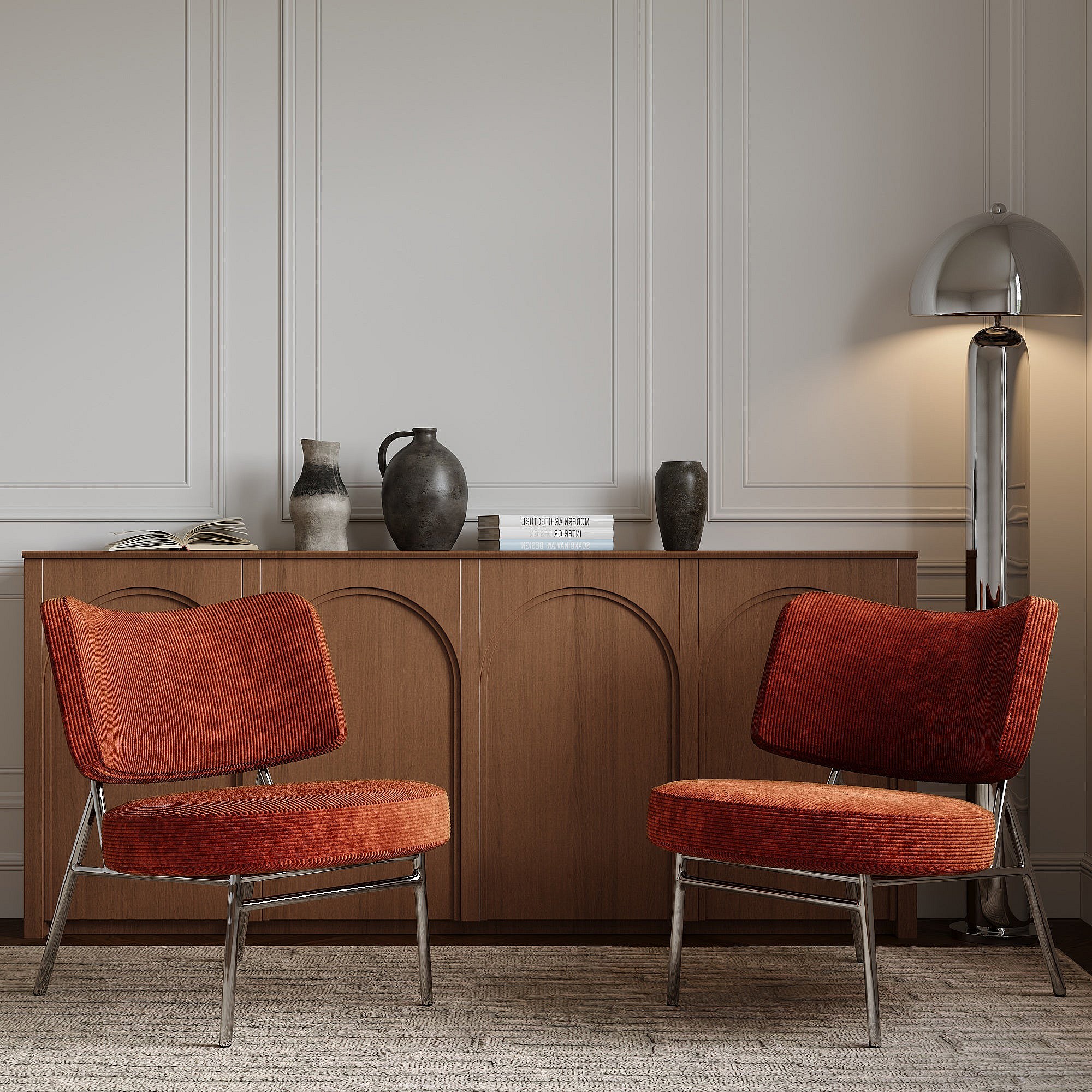 Brooks - Fauteuil rétro en velours pieds bois foncé - Rouille