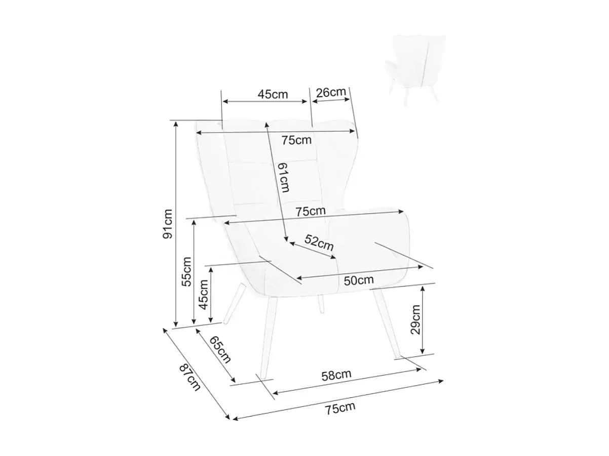 Fauteuil velours gris dossier capitonné esprit cosy pieds métal noir SUITE