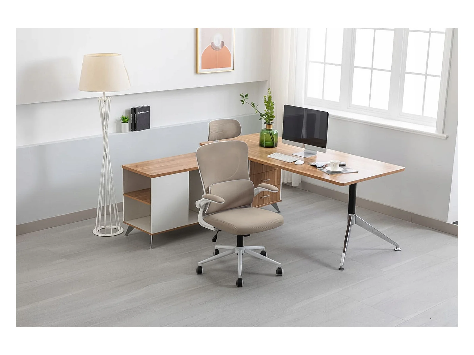 Chaise de bureau avec appuie-tête Crème Similicuir et bois SEF44150