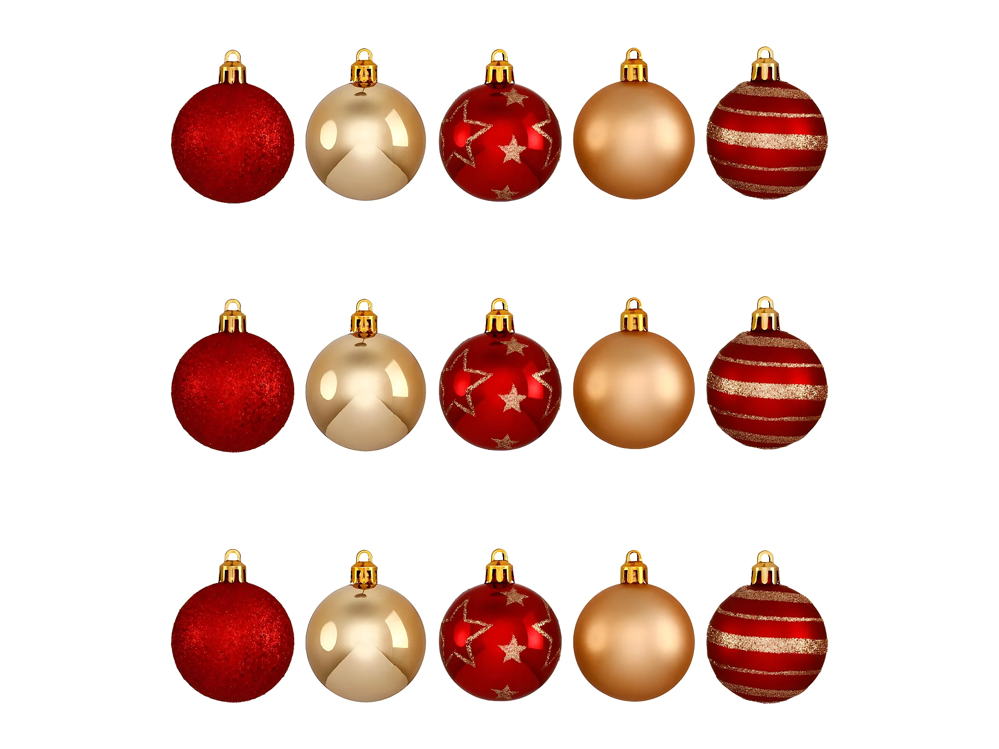 Déco de sapin Lot de 15 Boules de Noël D 5 cm - Rouge et Champagne