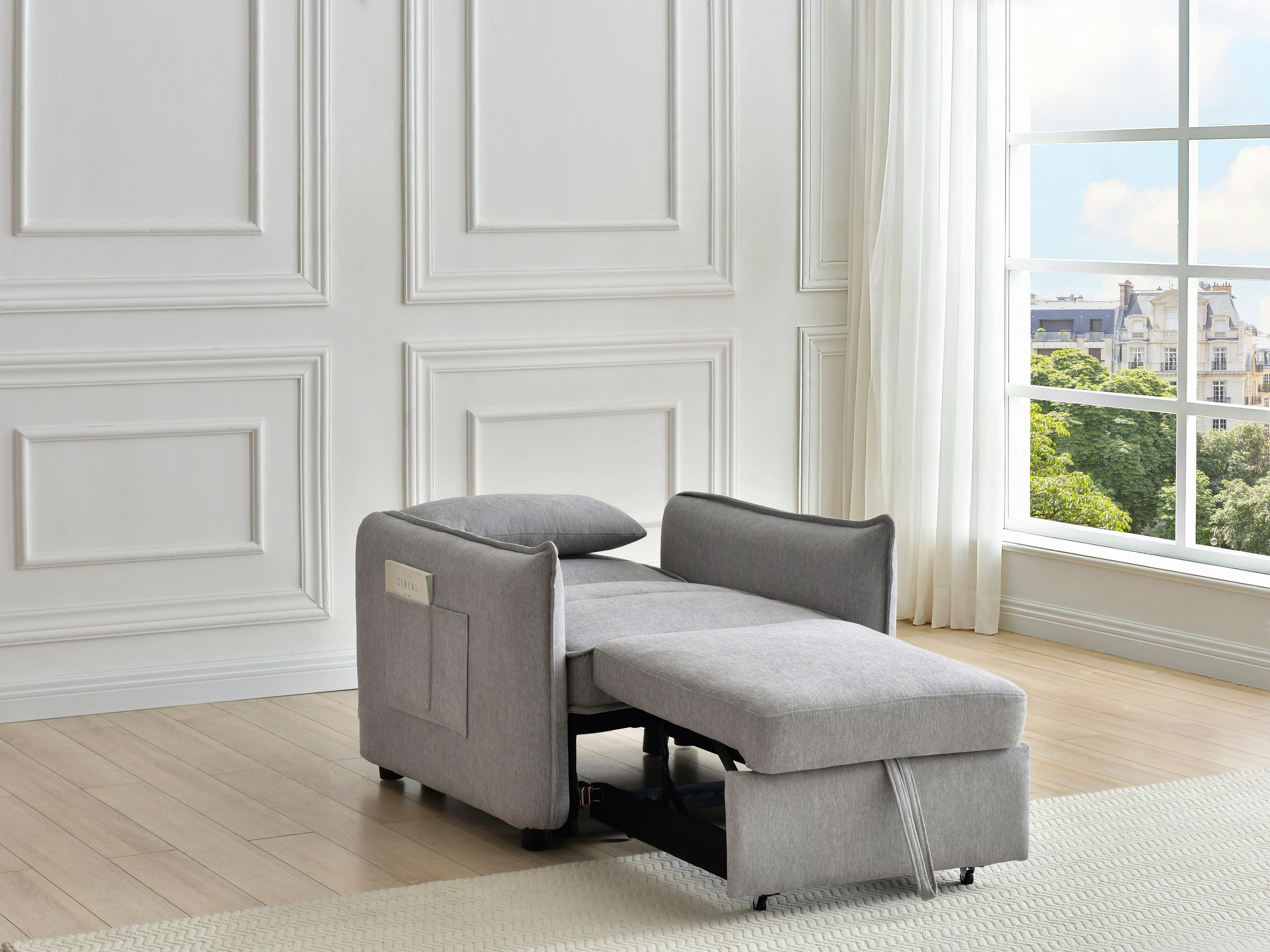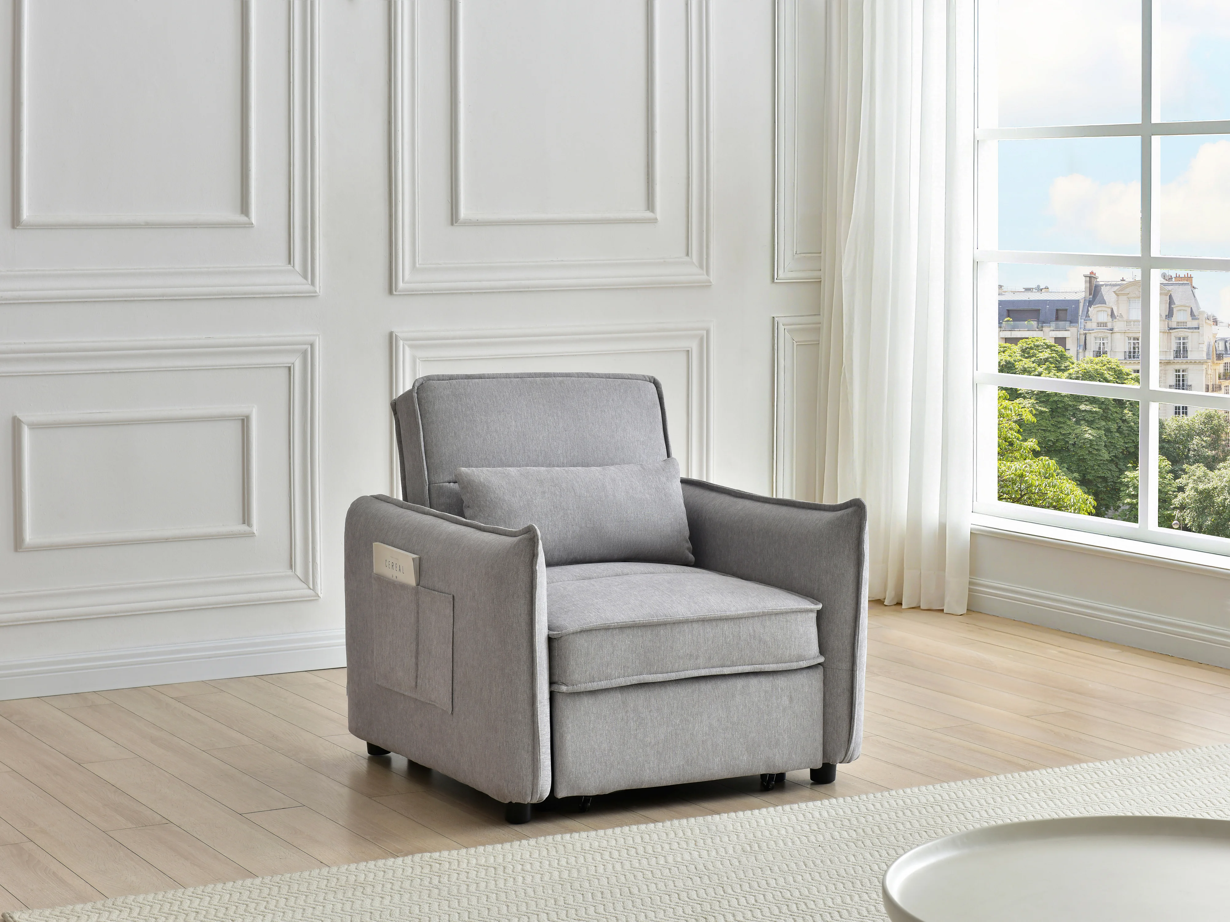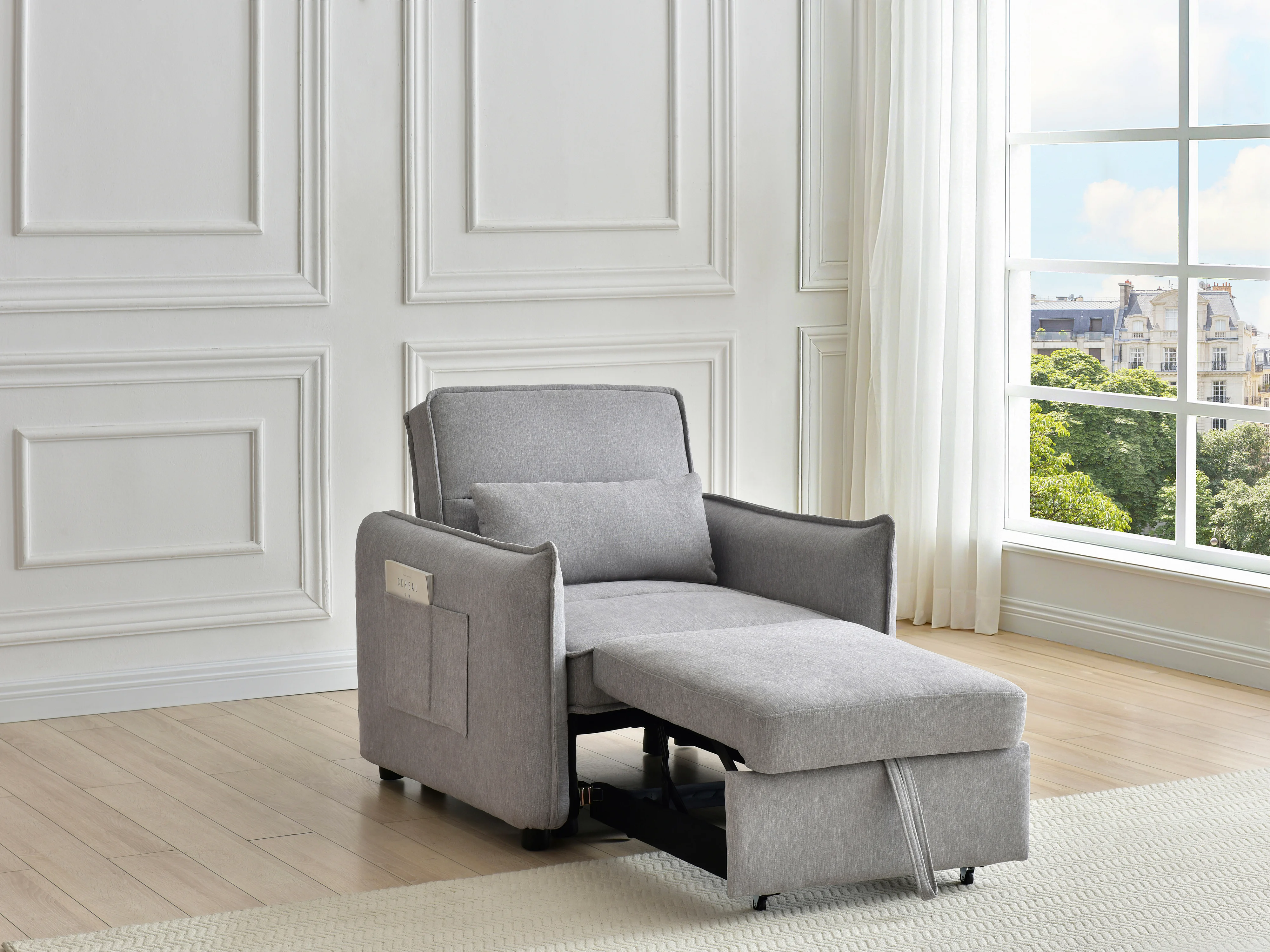 Fauteuil convertible en tissu gris clair FENORA