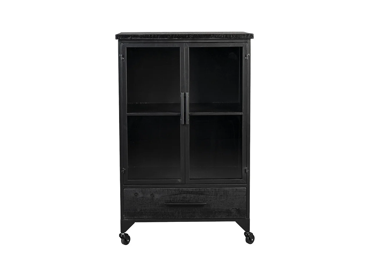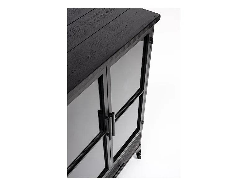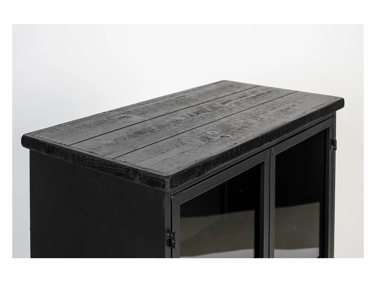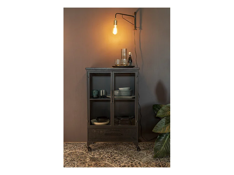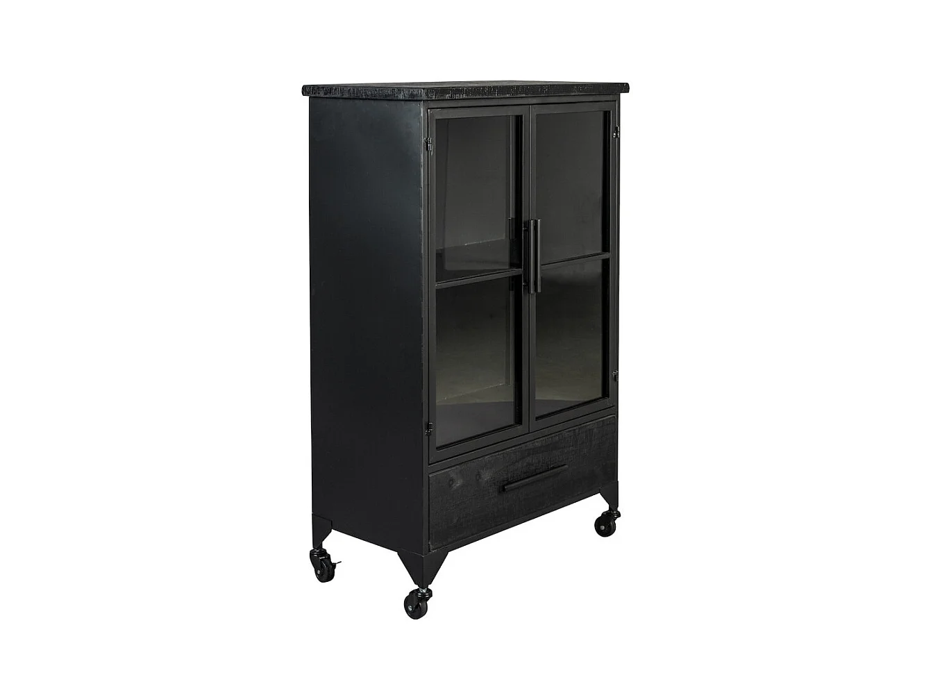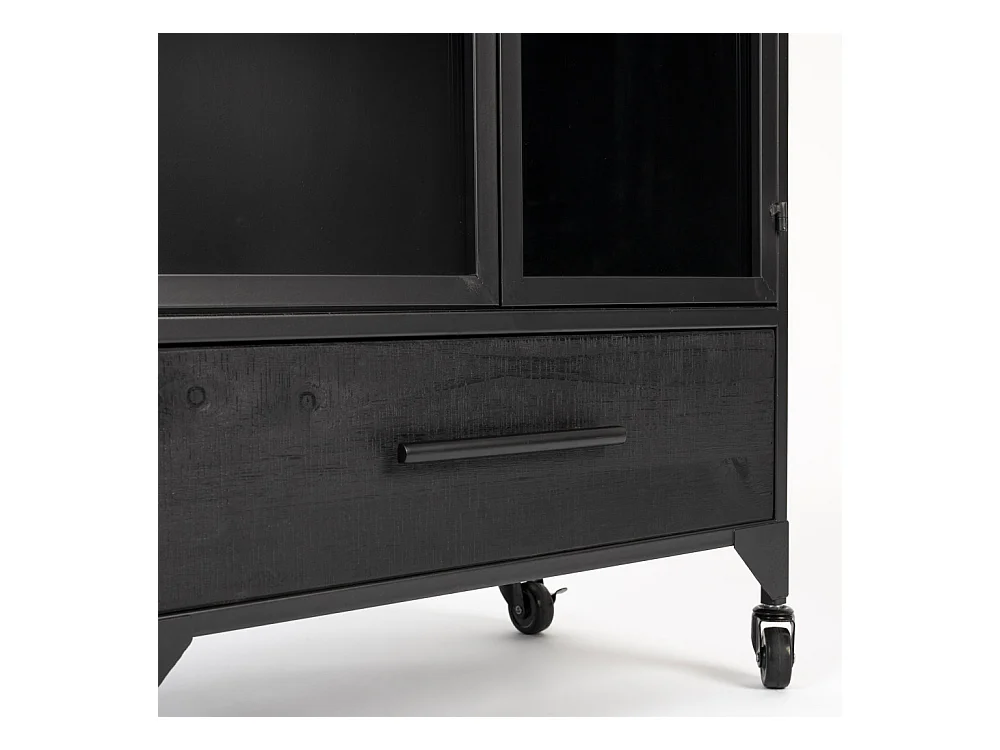 FERRE - Vitrine à roulettes en acier et bois noir H 105