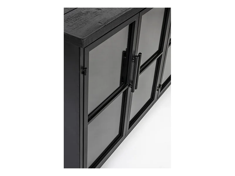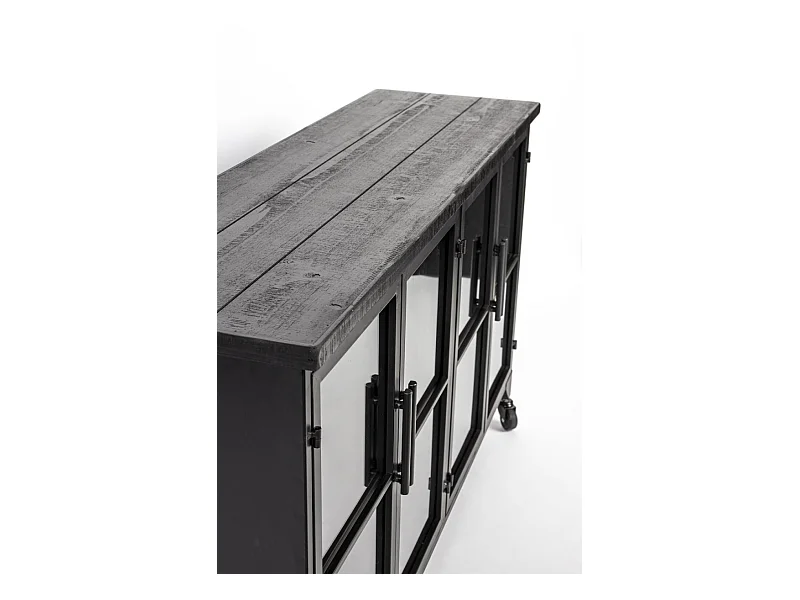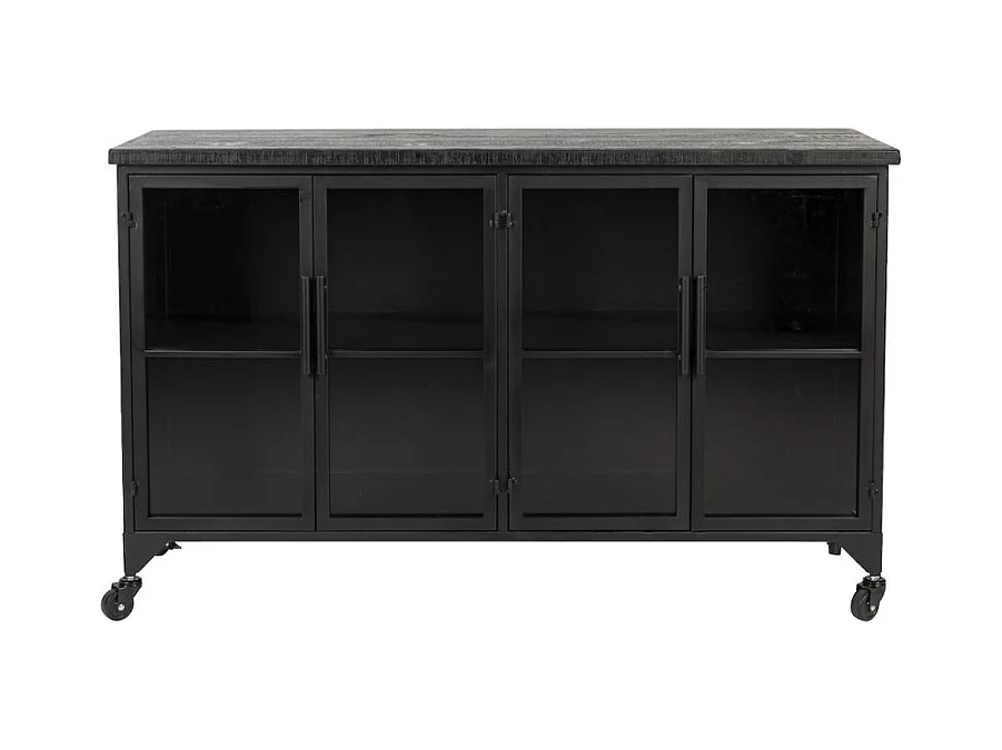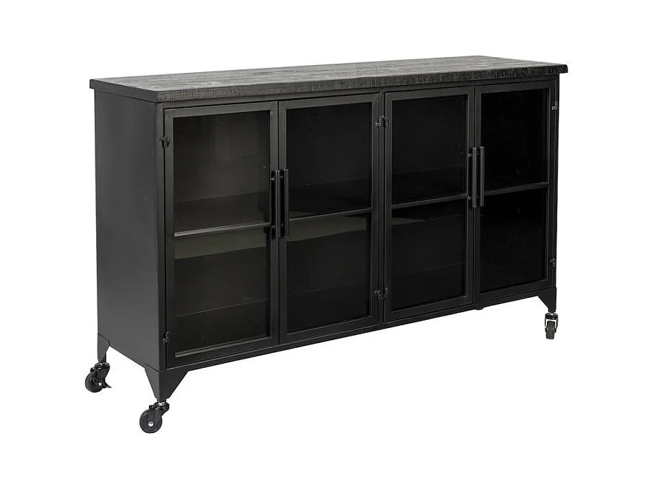 FERRE - Vitrine basse à roulettes en acier et bois L120