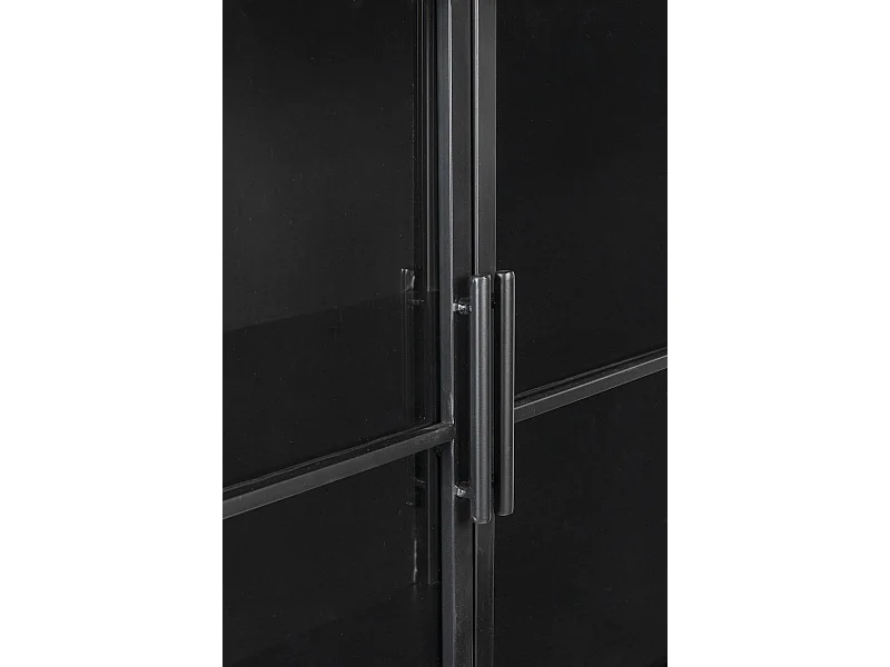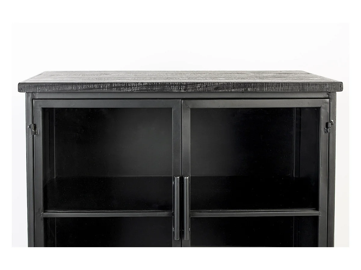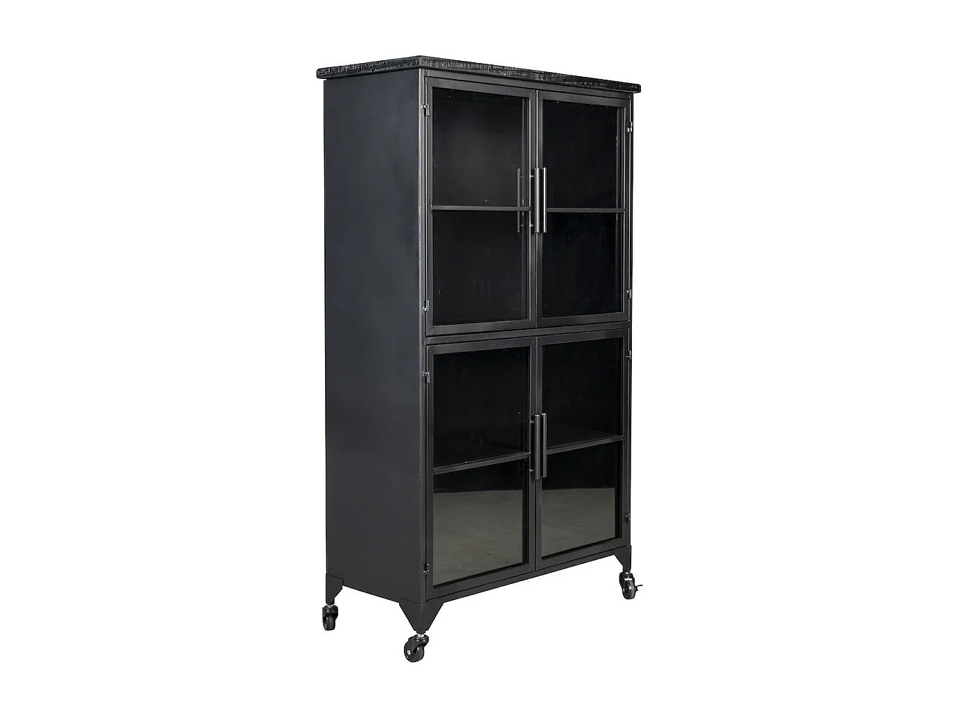 FERRE - Vitrine haute en acier et bois noir à roulettes H 133