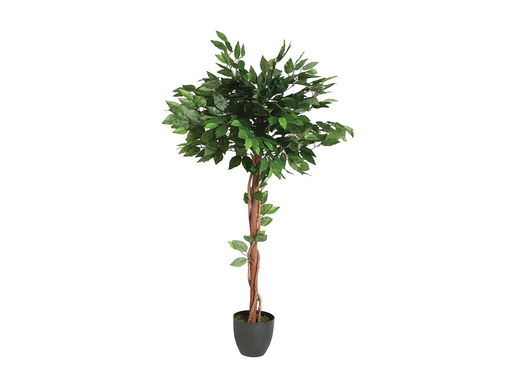 Plante artificielle ficus H.1,5 m troncs branches liane lichen feuilles grand réalisme pot inclus