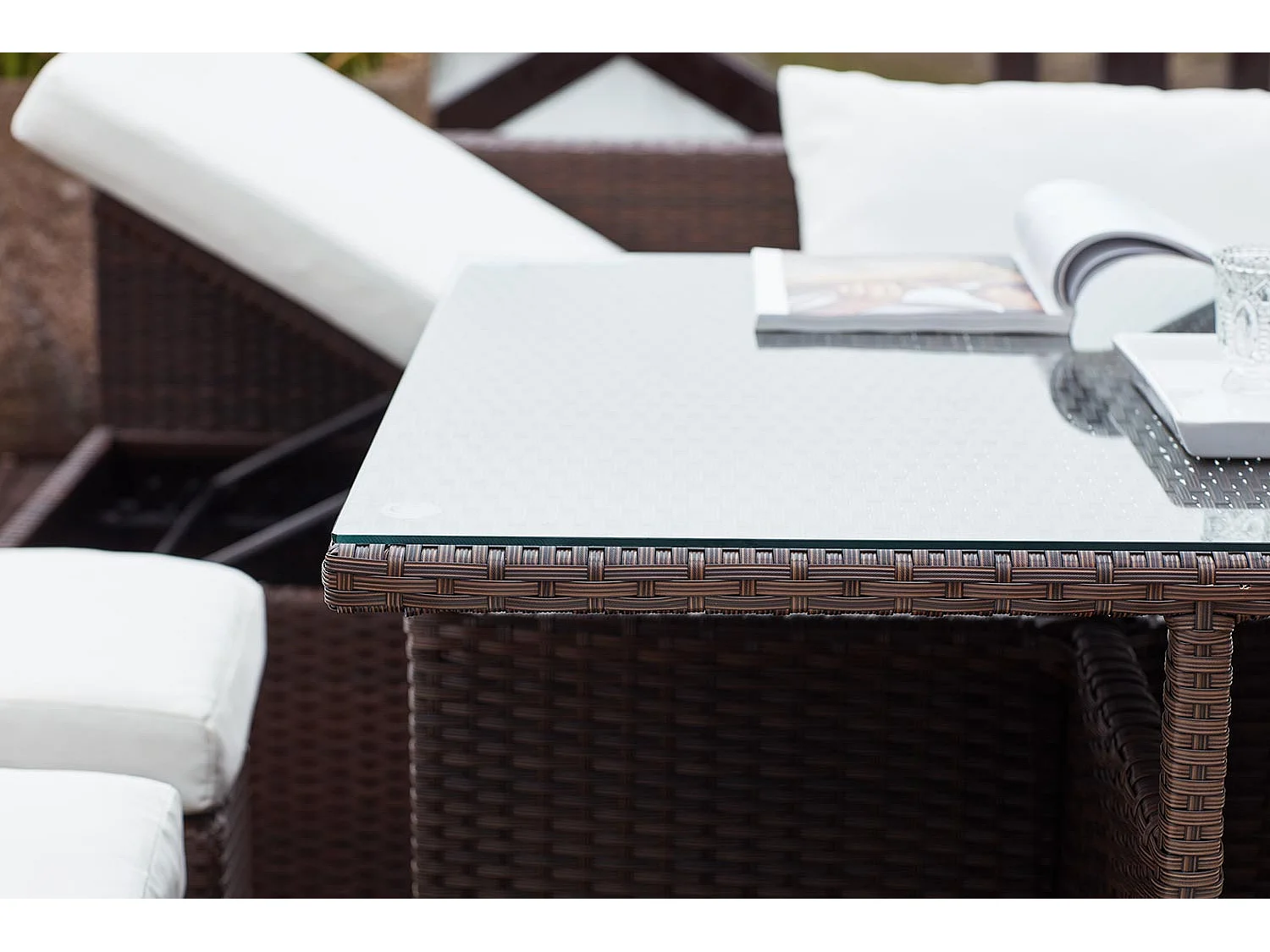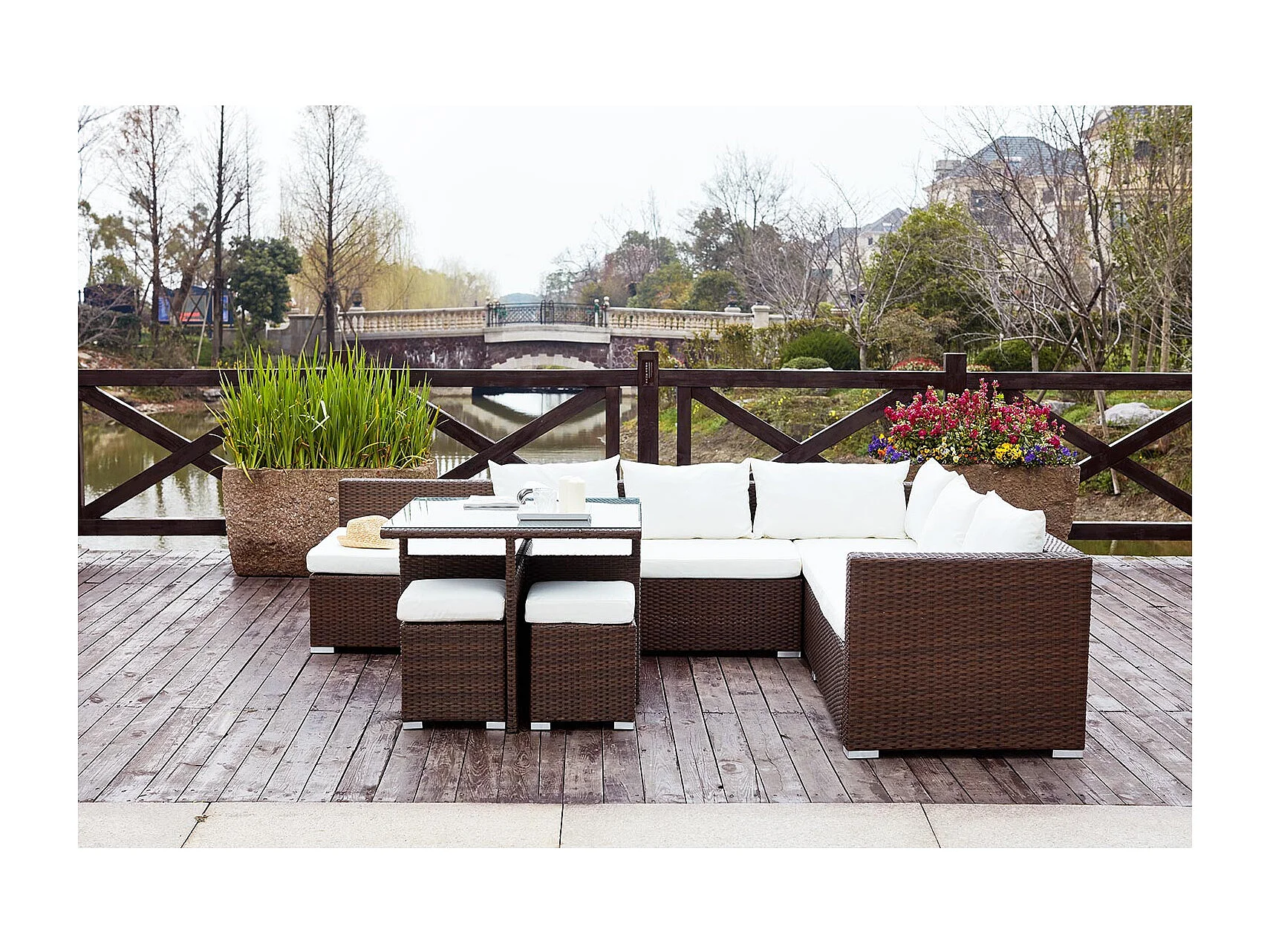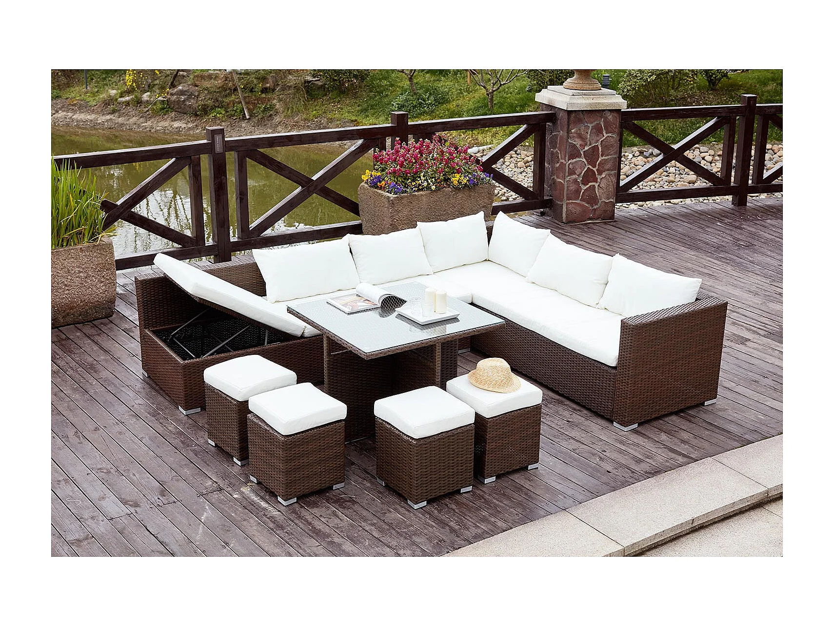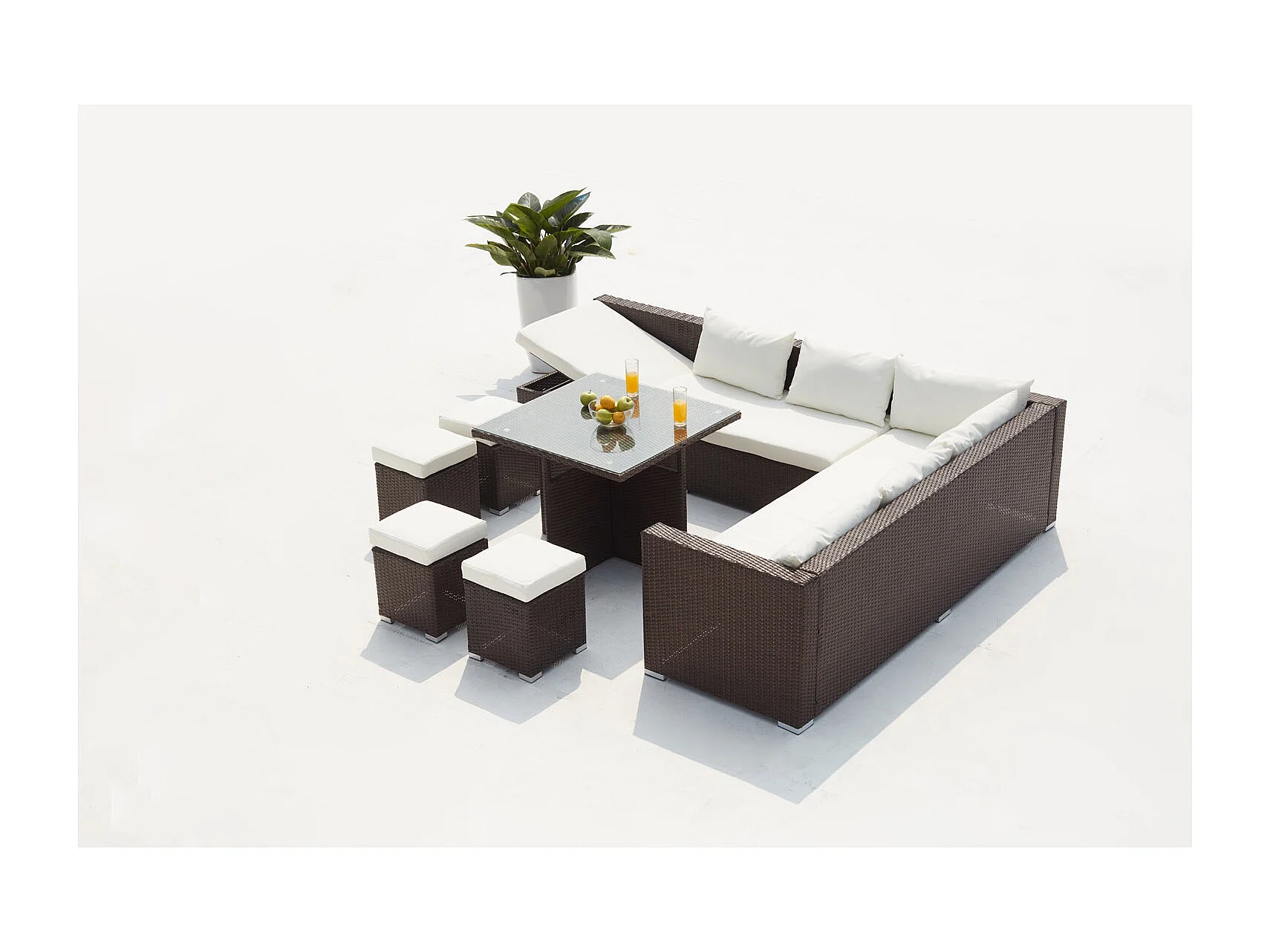 Salon de jardin encastrable 10 places en résine marron-blanc FIDJI