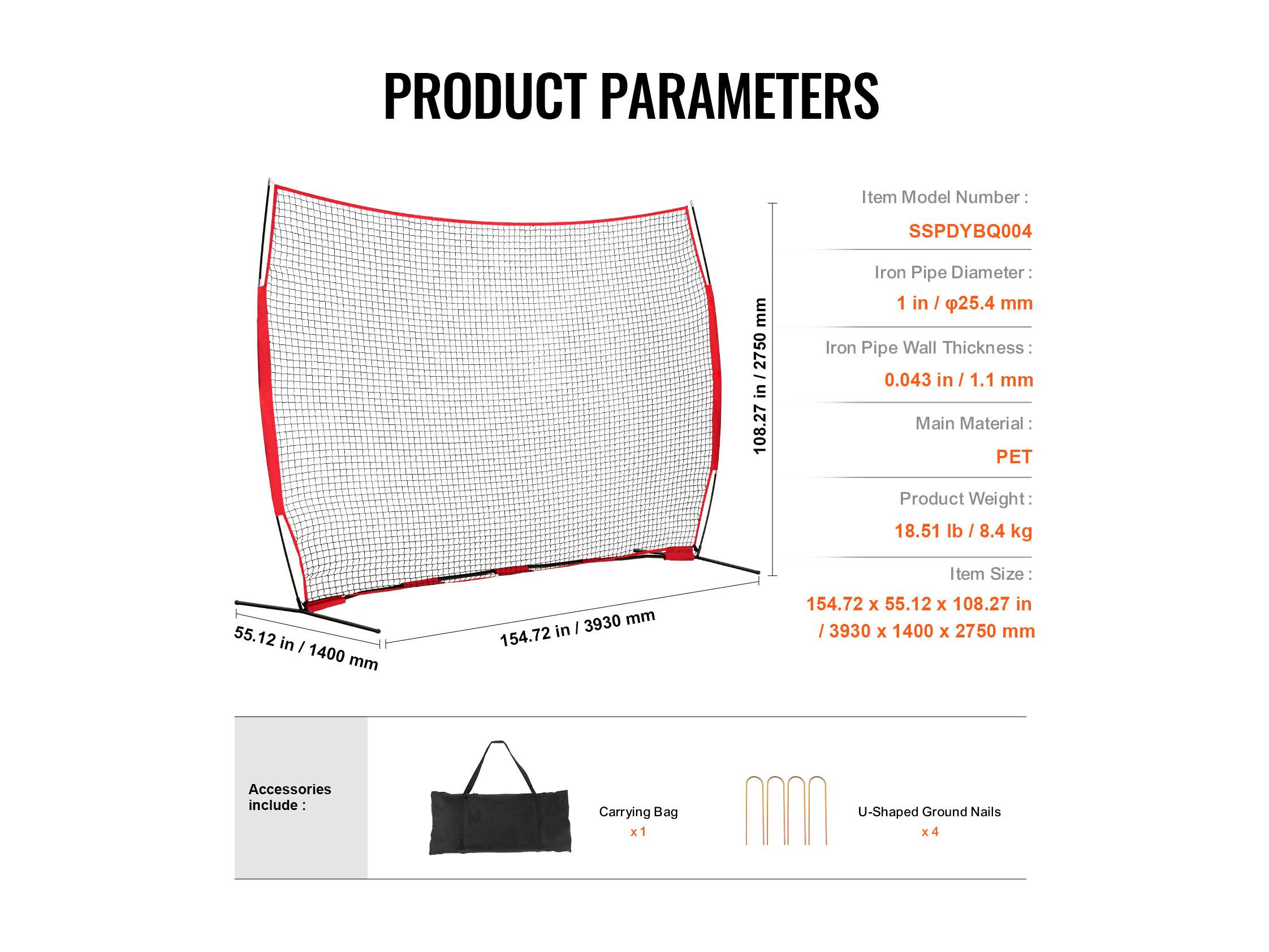 Filet de Protection Barricade SucceBuy, Filet d'Entraînement pour Softball, 360 x 270cm, Écran d'Entraînement pour Baseball, Softball, Football, Hockey