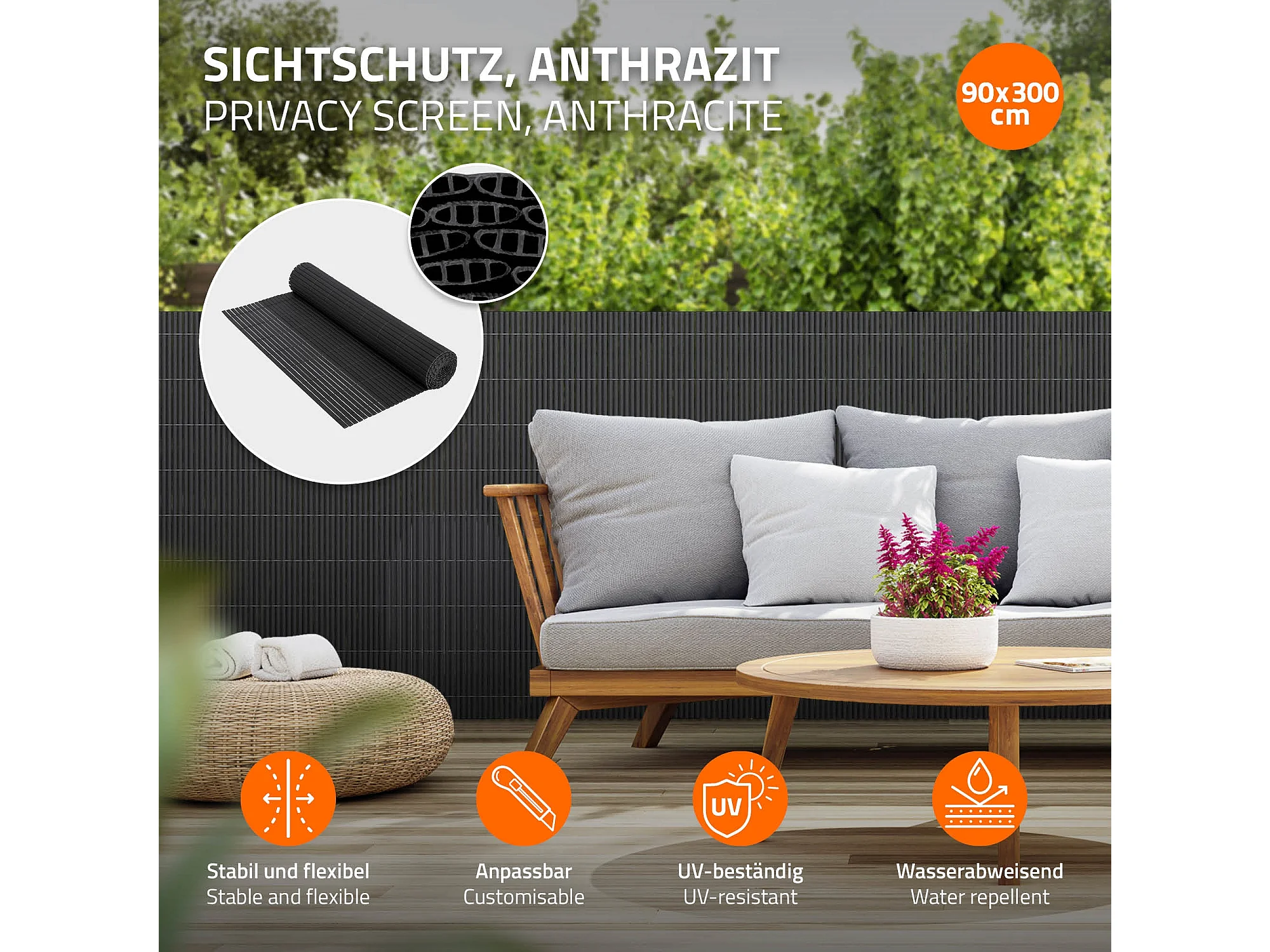 Filet de protection visuelle de jardin natte en PVC 90x300 cm clôture anthracite