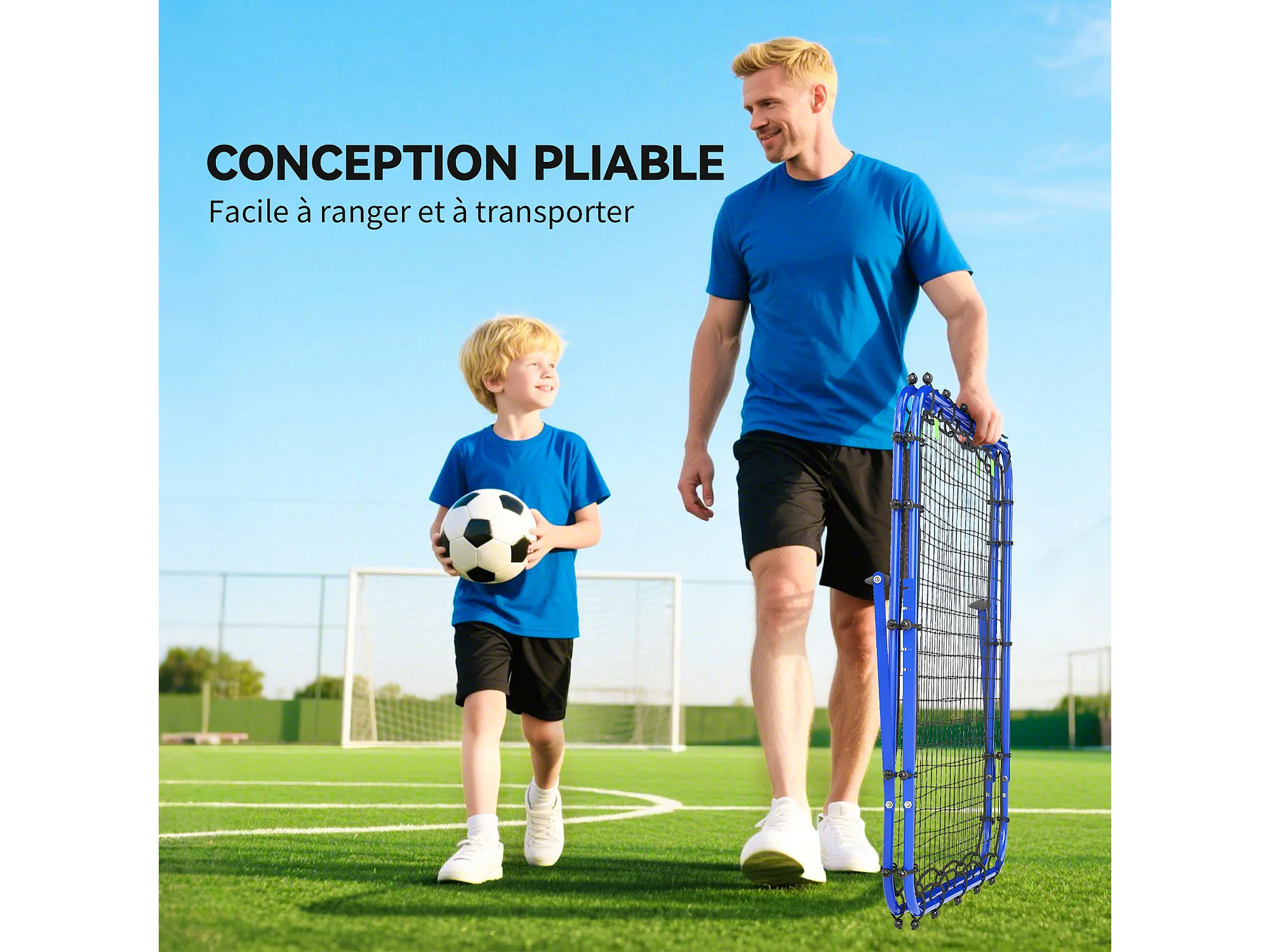 Filet de rebond double face pliable réglable 91 x 91 cm - rebondisseur football - acier PE bleu
