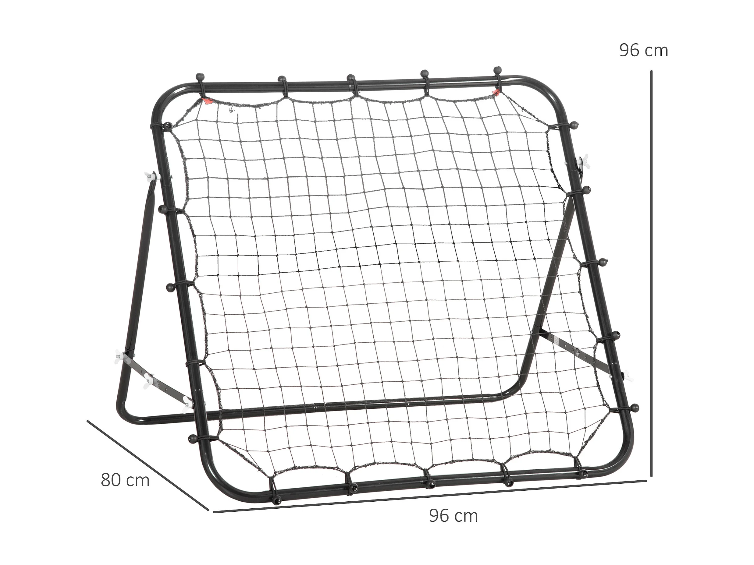 Filet de rebond double face pliable réglable 91 x 91 cm - rebondisseur football - acier PE noir