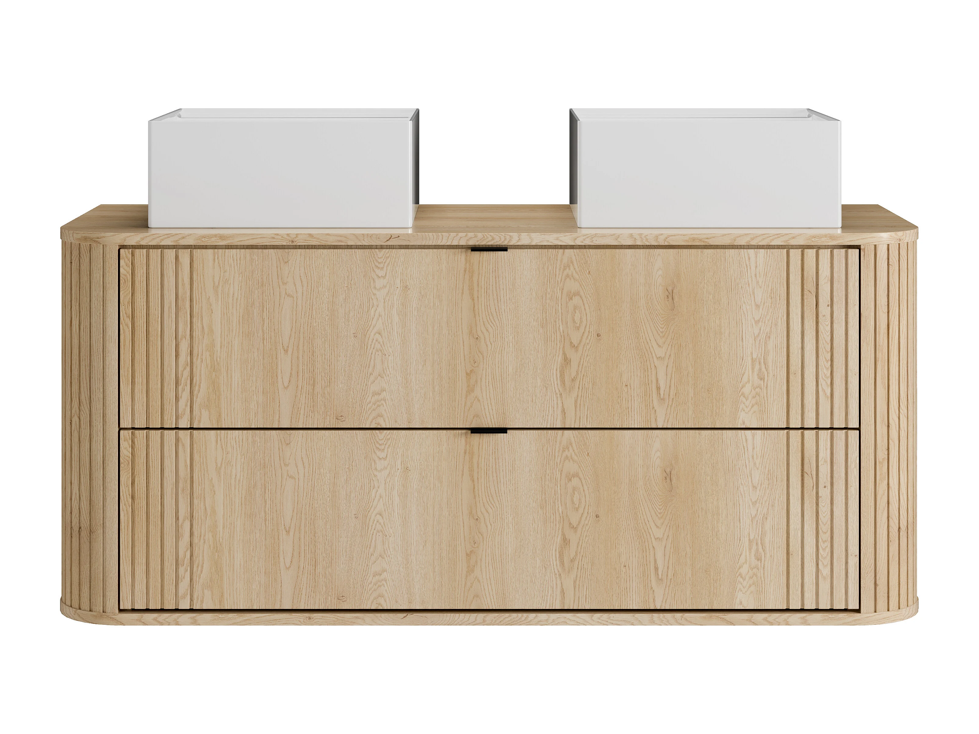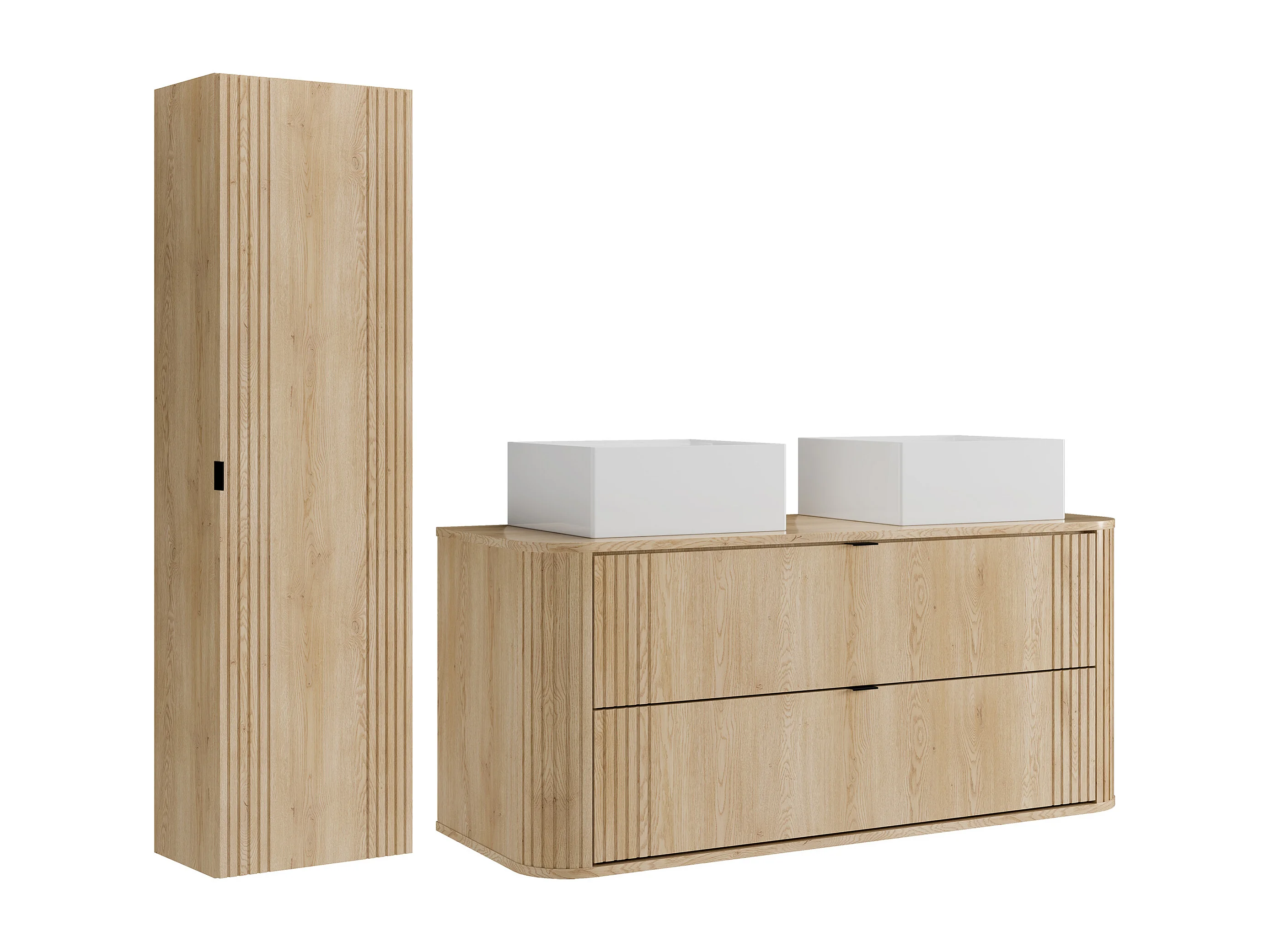 Meuble de salle de bain suspendu avec double vasque à poser carrée et colonne - Naturel clair - 120 cm - FILOR