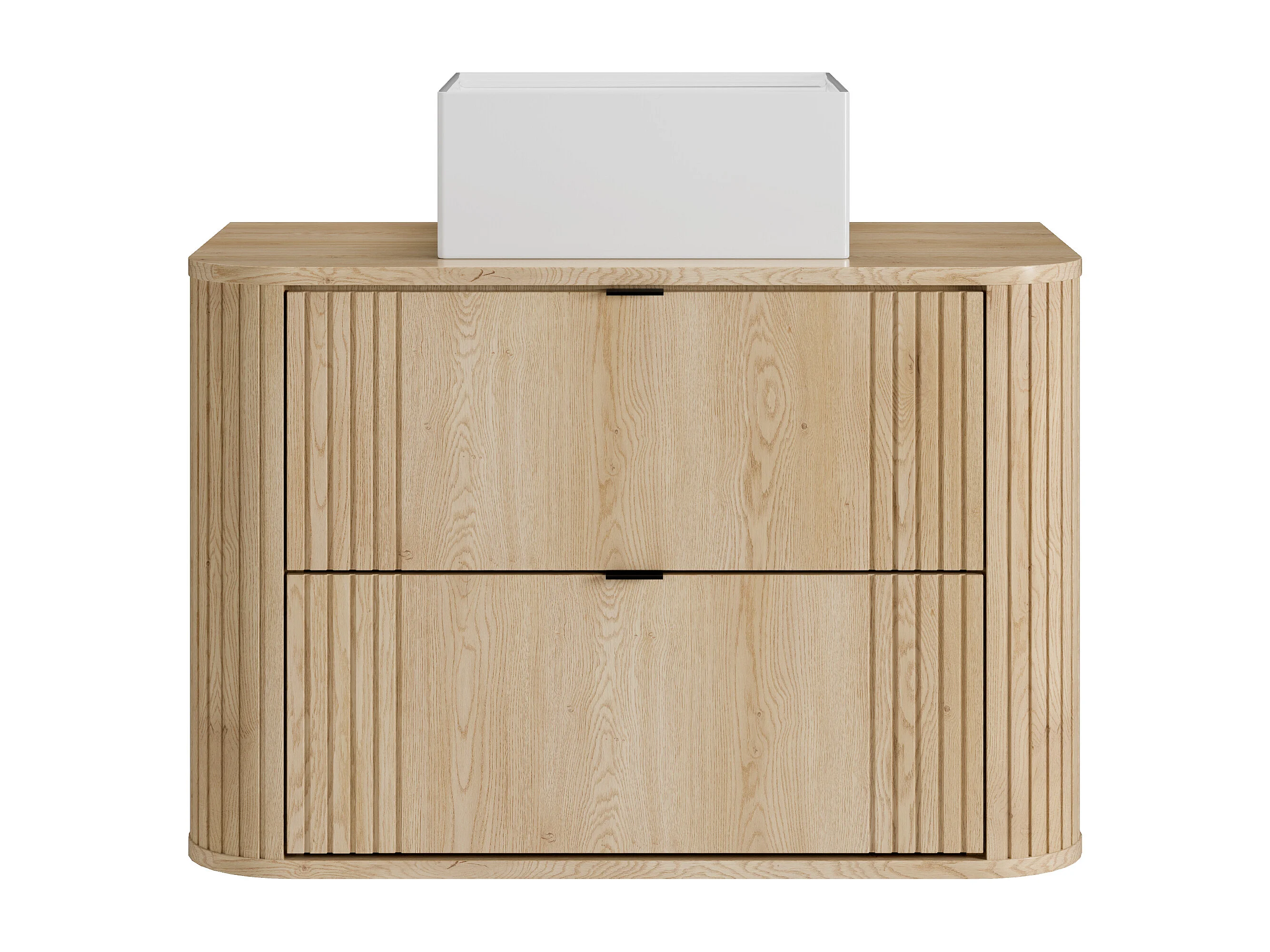Meuble de salle de bain suspendu avec vasque à poser carrée et colonne - Naturel clair - 80 cm - FILOR