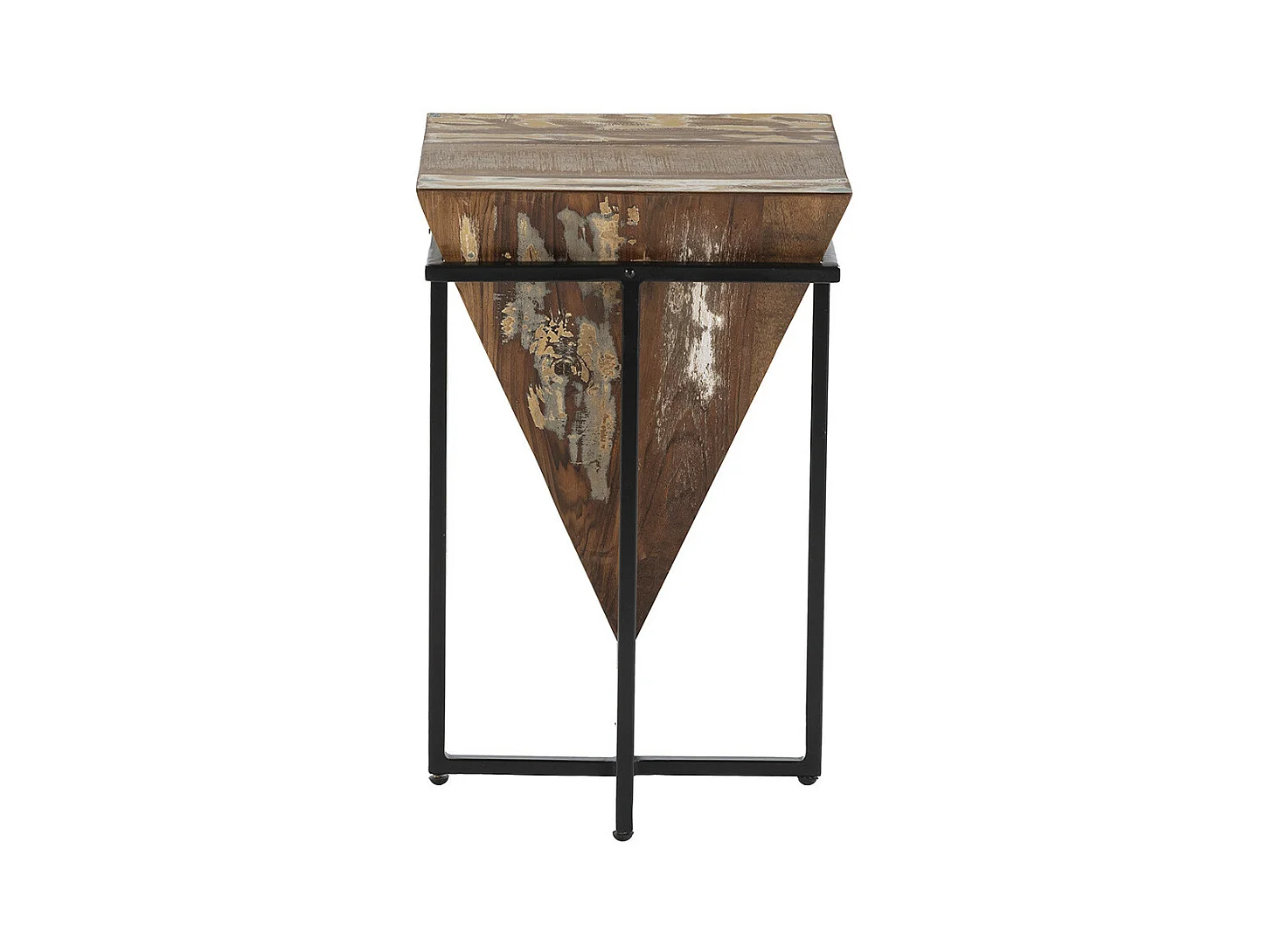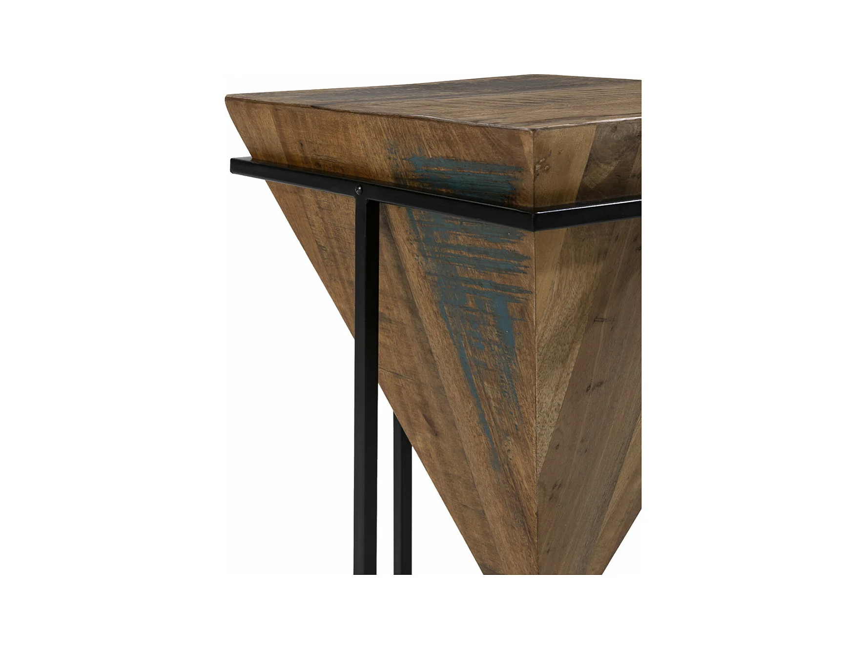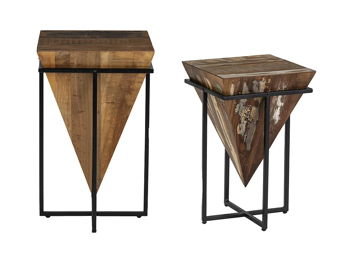 FINDY - Duo de Tables d'Appoint Pyramide Inversée Bois Massif et Métal Noir