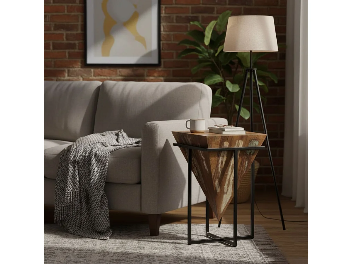 FINDY - Table d'Appoint H.56cm Pyramide Inversée Bois Massif et Métal Noir