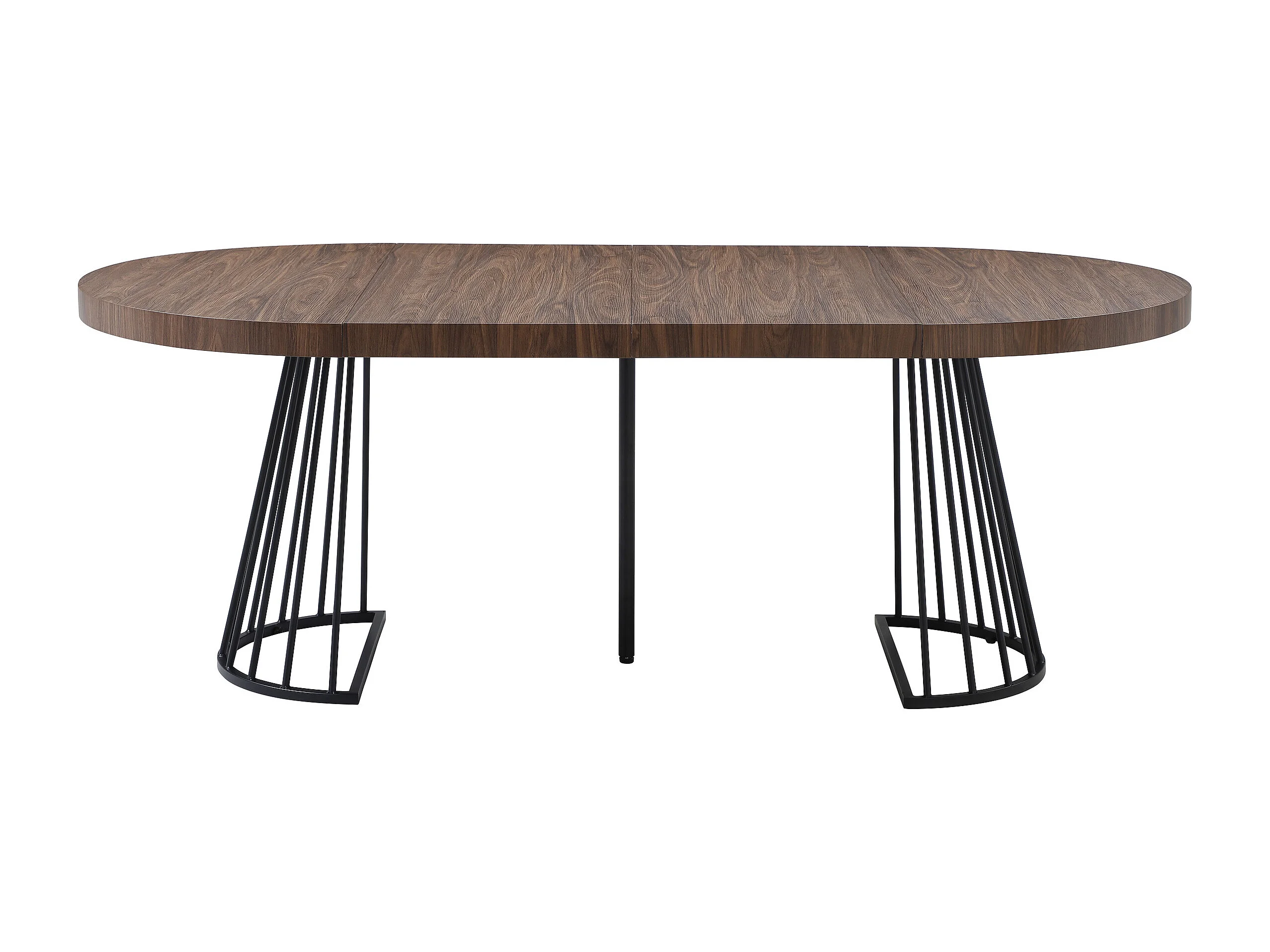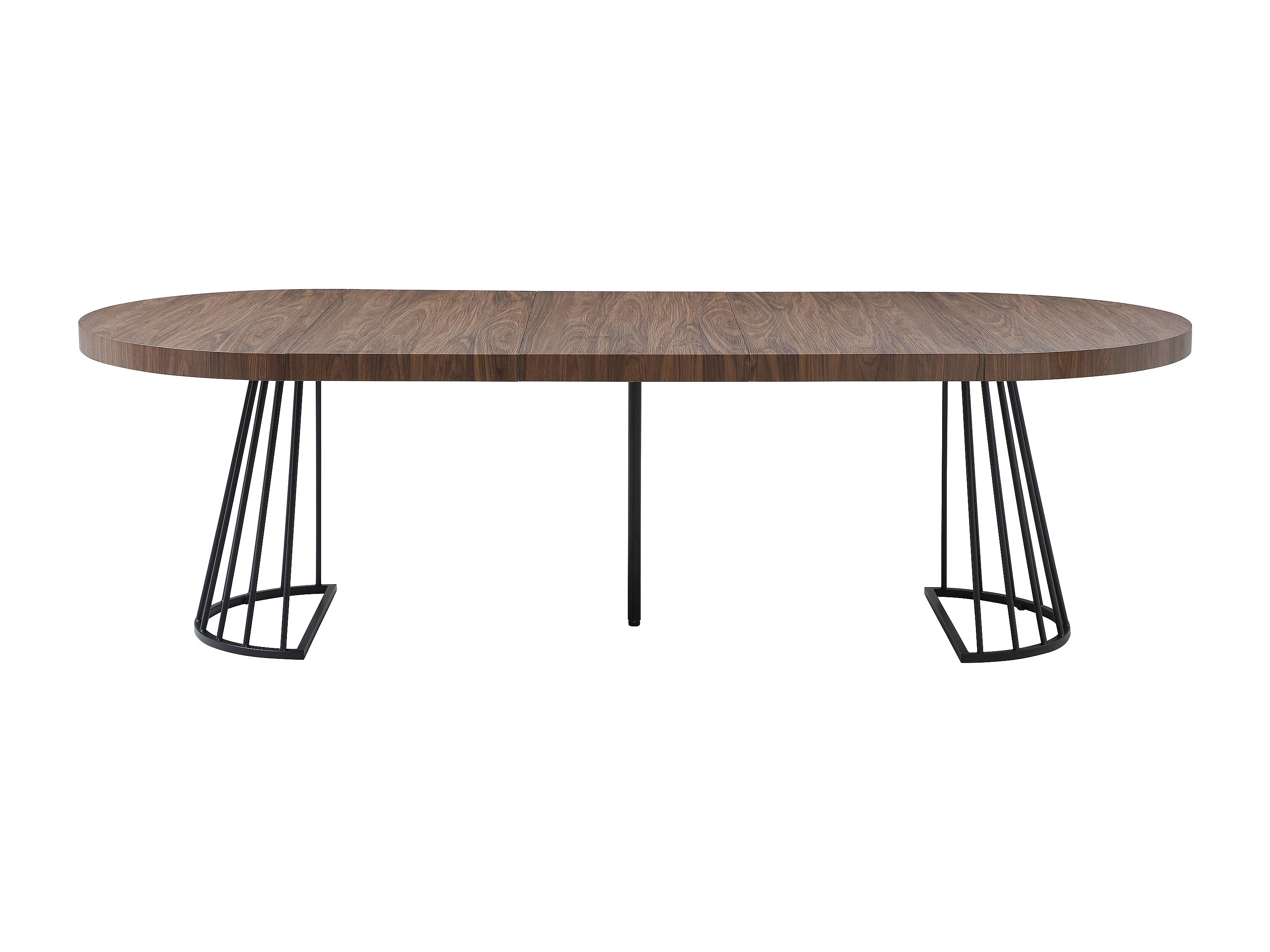 Table à manger extensible 2 à 12 personnes en MDF et acier - Naturel foncé et noir - FIRELA