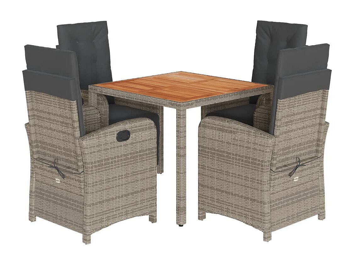 Fishers Ensemble à manger de jardin 5 pcs coussins gris résine tressée