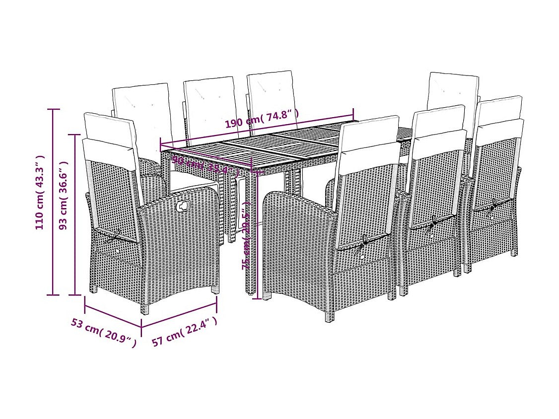 Fishers Ensemble à manger de jardin 9 pcs coussins gris résine tressée