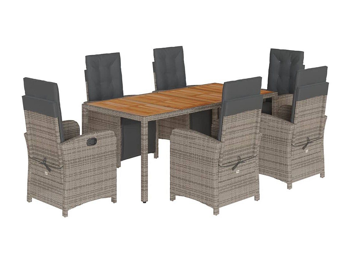 Fishers Ensemble à manger de jardin et coussins 7 pcs gris rotin