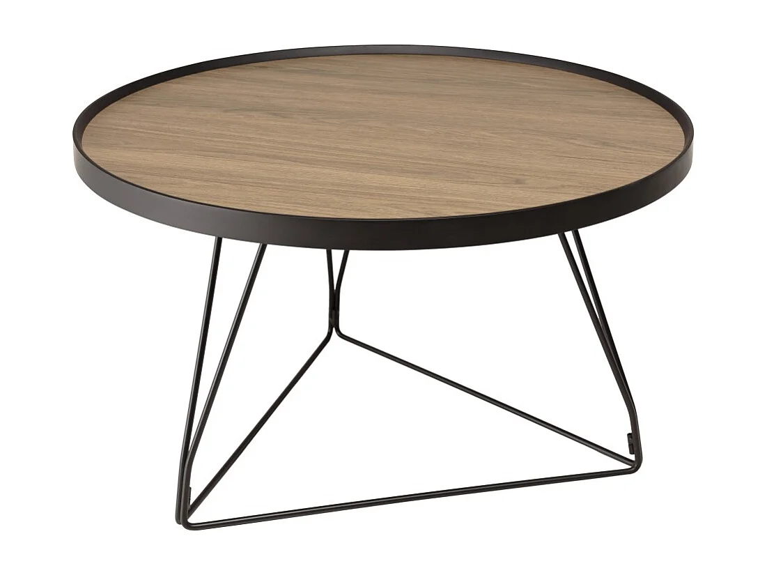 JULIA - Table basse ronde 60x60cm pieds métal noir et bois marron