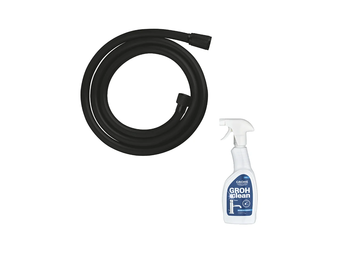 Flexible de douche GROHE VitalioFlex Trend 1750 mm noir mat + nettoyant GrohClean