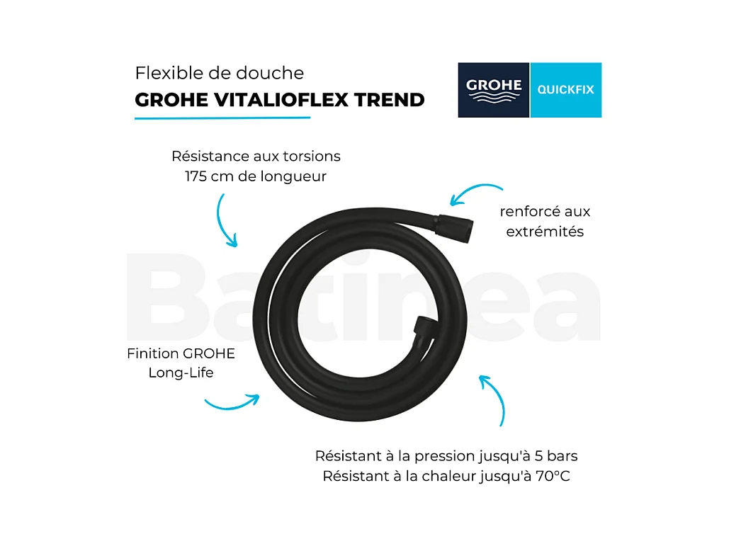 Flexible de douche GROHE VitalioFlex Trend 1750 mm noir mat