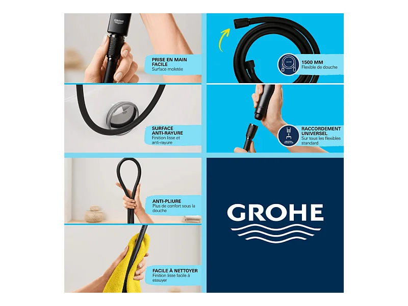Flexible de douche GROHE VitalioFlex Trend 1750 mm noir mat + microfibre