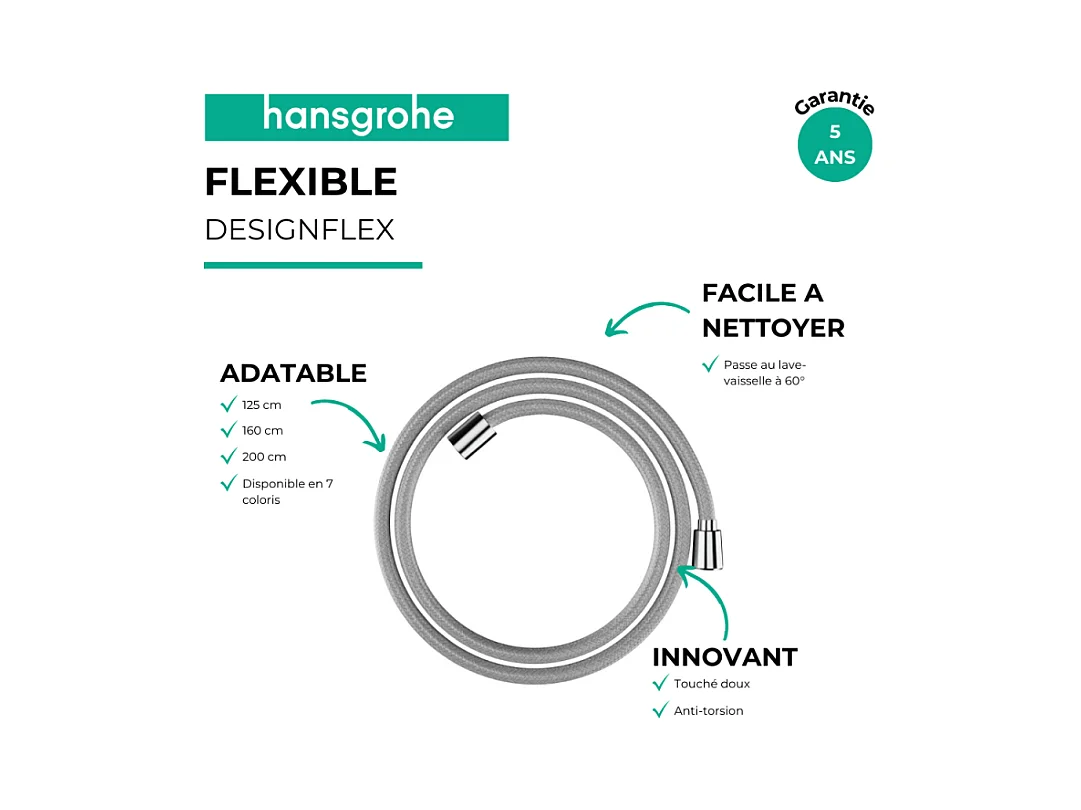 Flexible de douche HANSGROHE Designflex 160 cm chromé