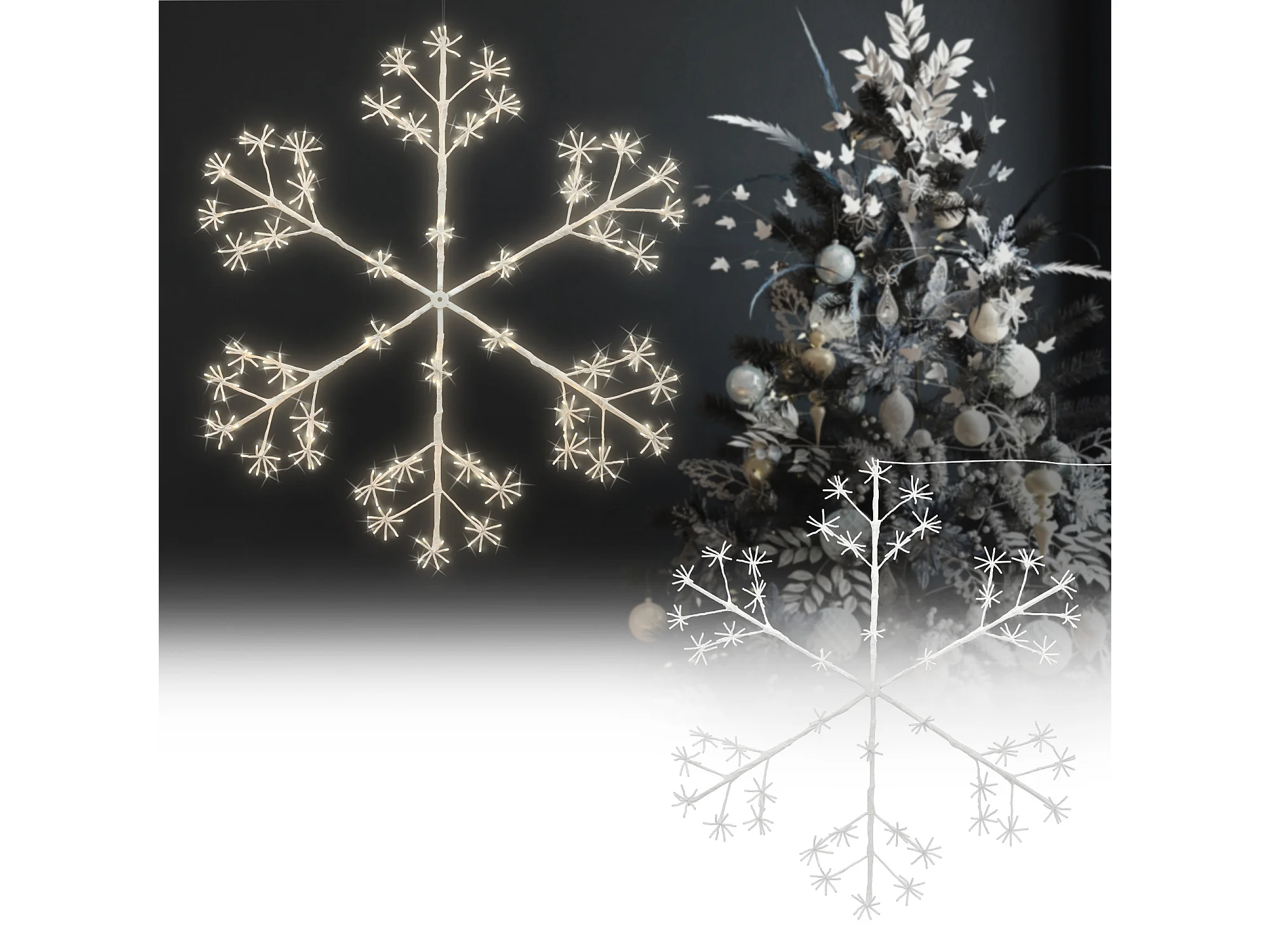 Figure de flocon de neige de Noël et 48 LED Blanc chaud 27x27cm